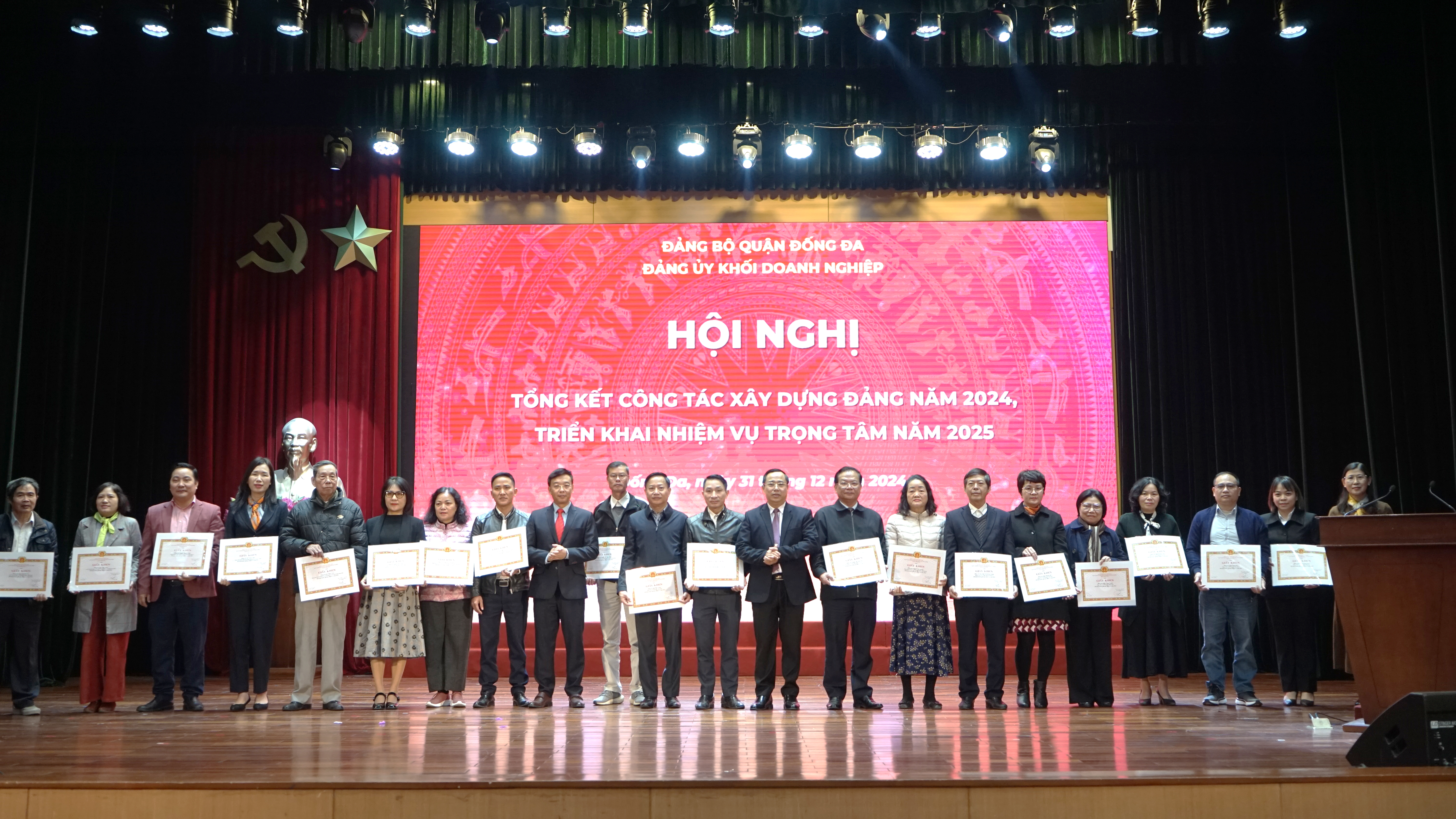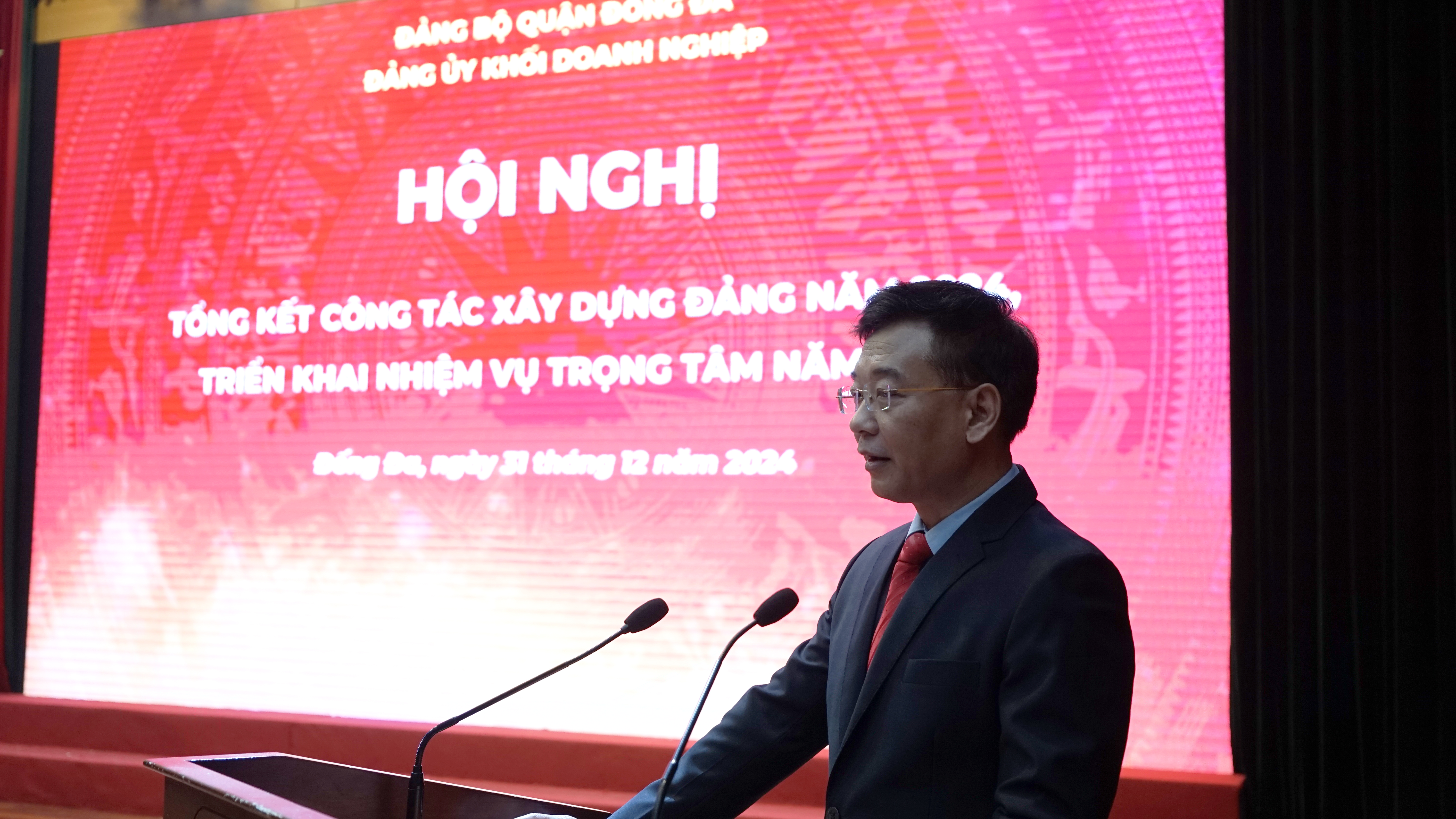Cũng trong sáng ngày 31/12, Đảng ủy Đảng bộ Khối doanh nghiệp quận Đống Đa tổ chức Hội nghị triển khai đợt sinh hoạt chính trị, nghiên cứu, quán triệt, tuyên truyền tư tưởng, chỉ đạo, định hướng lớn của Đảng và đồng chí Tổng Bí thư Tô Lâm về 'Kỷ nguyên mới - Kỷ nguyên vươn mình của dân tộc'.
