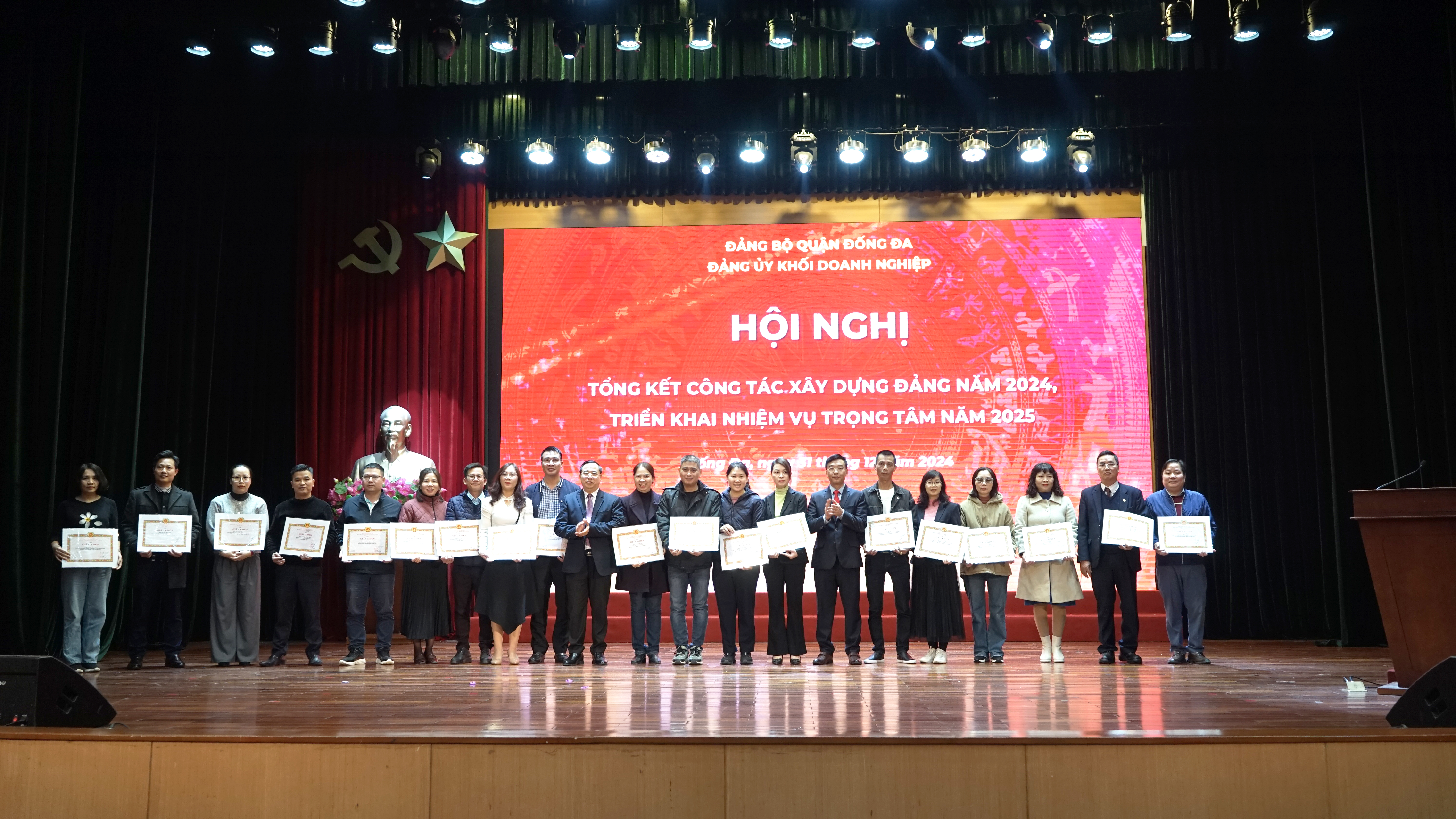 Tham dự hội nghị có ông Vũ Mạnh Chiến, Quận uỷ viên, Bí thư Đảng bộ Khối doanh nghiệp quận Đống Đa; ông Nguyễn Văn Quang, Phó Bí thư, Chủ nhiệm Uỷ ban Kiểm tra Đảng bộ Khối Doanh nghiệp quận Đống Đa cùng các Bí thư Chi bộ đóng trên địa bàn quận và đại diện các tổ chức Đảng, các Đảng viên hoàn thành xuất sắc nhiệm vụ năm 2024.
