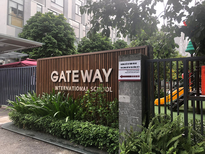 | Trường Gateway tự xưng quốc tế trên bảng hiệu |