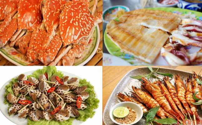 Đây cũng là nơi nổi tiếng với các món hải sản tươi ngon, giàu dinh dưỡng và giá trị kinh tế như mực, tôm, cầu gai, hải sâm… Đặc biệt, du khách có thể tham gia trải nghiệm đánh bắt, chế biến hải sản cùng những người dân thân thiện, hiếu khách, hay thưởng thức những bữa tiệc hải sản bên bờ biển cùng người thân.