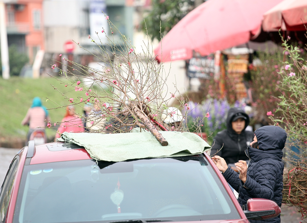 Trong khi đó, chị Thúy trú tại Cầu Giấy cho biết: “Năm nào gia đình tôi cũng mua 1 cành đào về cắm dịp Tết Dương nên năm nay dù bận đến mấy cũng có mặt tại đây để mua 1 cành về nhà”. |