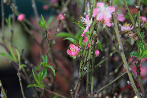 | Những nhành đào phai khoe sắc thắm |
