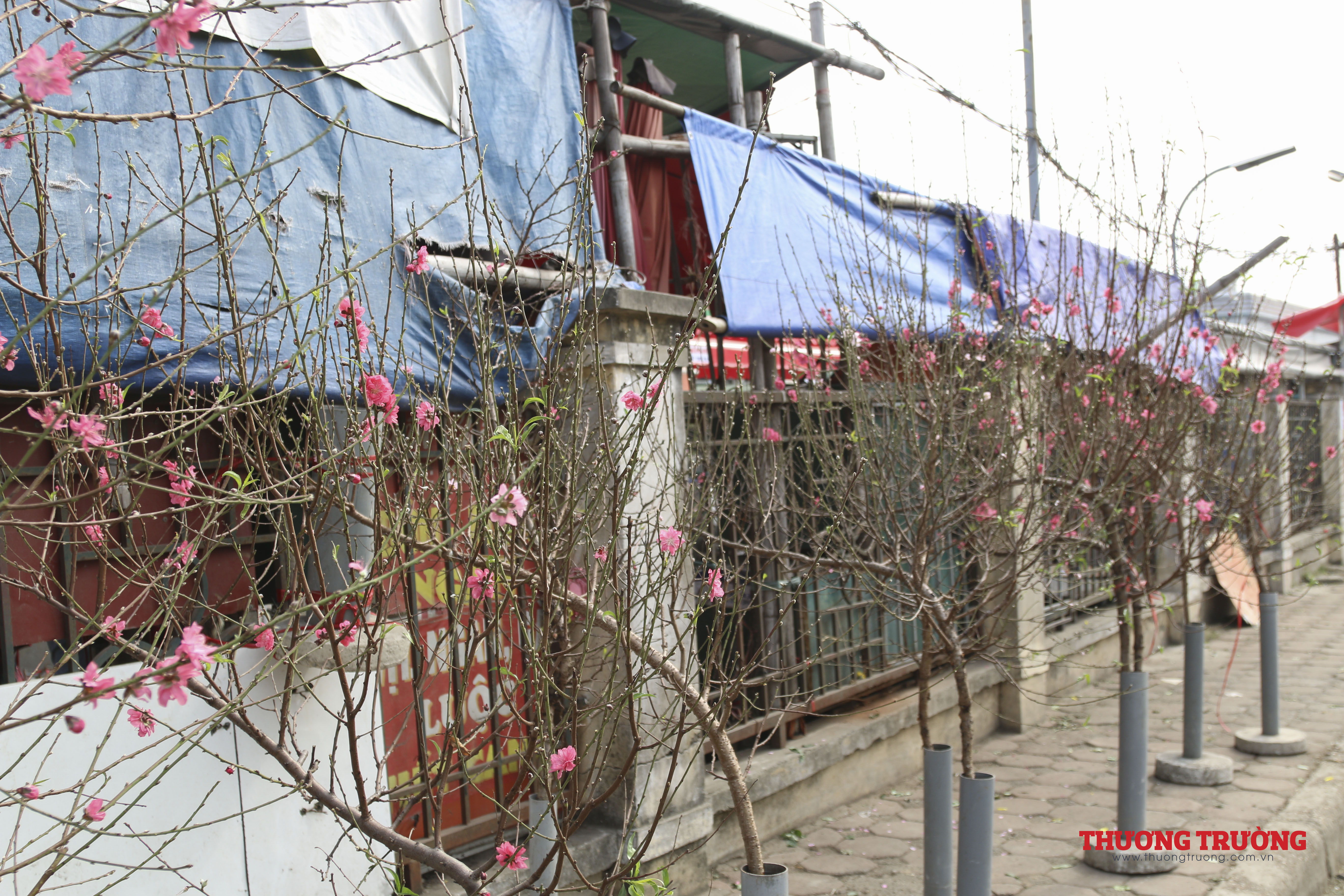 Do không được nở đúng vụ nên những cành đào nở sớm không thật sự đẹp, lượng hoa ít, sắc hoa không thắm.