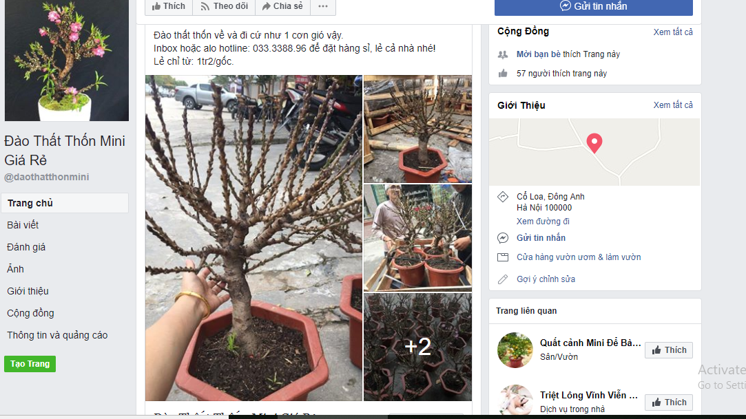 Không chỉ xuất hiện nhiều trên các con phố hoa, giống đào này còn đang được quảng cáo tràn lan trên mạng xã hội facebook. Thật nhanh chóng để mua được một chậu đào mini tương tự như thế này qua các cửa hàng online. Theo lời của những người bán giới thiệu, loại đào này có tên gọi đào thất thốn, là giống cây quý thường dùng để dâng tiến nhà vua vào thời xưa.