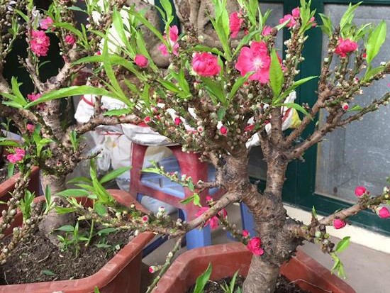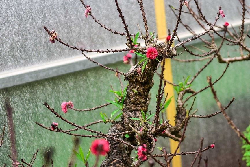 Theo khảo sát của PV, dọc theo một số tuyến đường và chợ hoa tại Hà Nội, bên cạnh các chậu đào bích, đào phai truyền thống, có loại loại cây cảnh khá cũng được bày bán và thu hút khá đông người đến xem, mua hàng. Những chậu đào dáng thấp, cành ngắn, chỉ cao khoảng 40 - 50 cm, trổ hoa khá dày màu hồng đậm, nụ mọc chi chít để đầu cành, thân cây nhỏ tầm cỡ cổ tay hoặc nhỉnh hơn một chút, thích hợp để bày biện trên bàn tiếp khách, ban công, cầu thang,... cho gia đình ngày Tết.