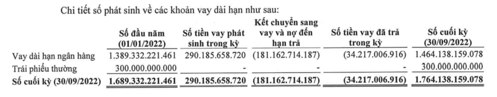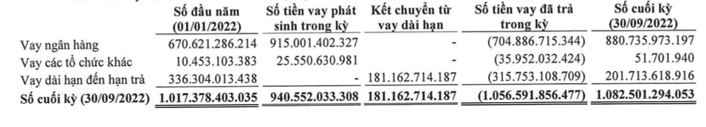 Về nguồn vốn, tổng nợ phải trả cuối quý 3 đạt 3.749 tỷ đồng, cao gấp 1,8 vốn chủ sở hữu (2.096 tỷ đồng), trong đó dư nợ vay là 2.846 tỷ đồng (tăng 5% so với đầu năm), chiếm 75% tổng nợ. Tỷ lệ nợ vay/vốn chủ sở hữu là 1,35 lần là rủi ro không nhỏ trong bối cảnh lãi suất tăng cao như hiện nay.