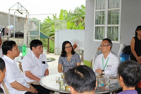 PGS.TS Lê Văn Phan (bìa phải) , trưởng nhóm nghiên cứu vaccine phòng dịch tả lợn châu Phi của Học viện Nông nghiệp Việt Nam đang trao đổi cùng đoàn công tác của Bộ trưởng Nguyễn Xuân Cường tại cơ sở nuôi và thử nghiệm vaccine. (Ảnh TTTĐ) |