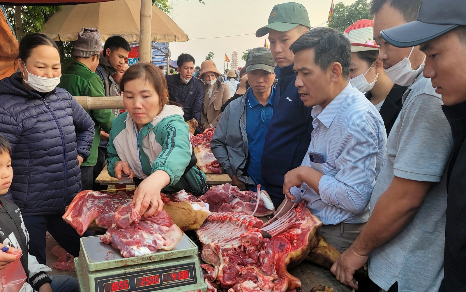 Đi chợ Viềng mua thịt bò lấy may mắn.