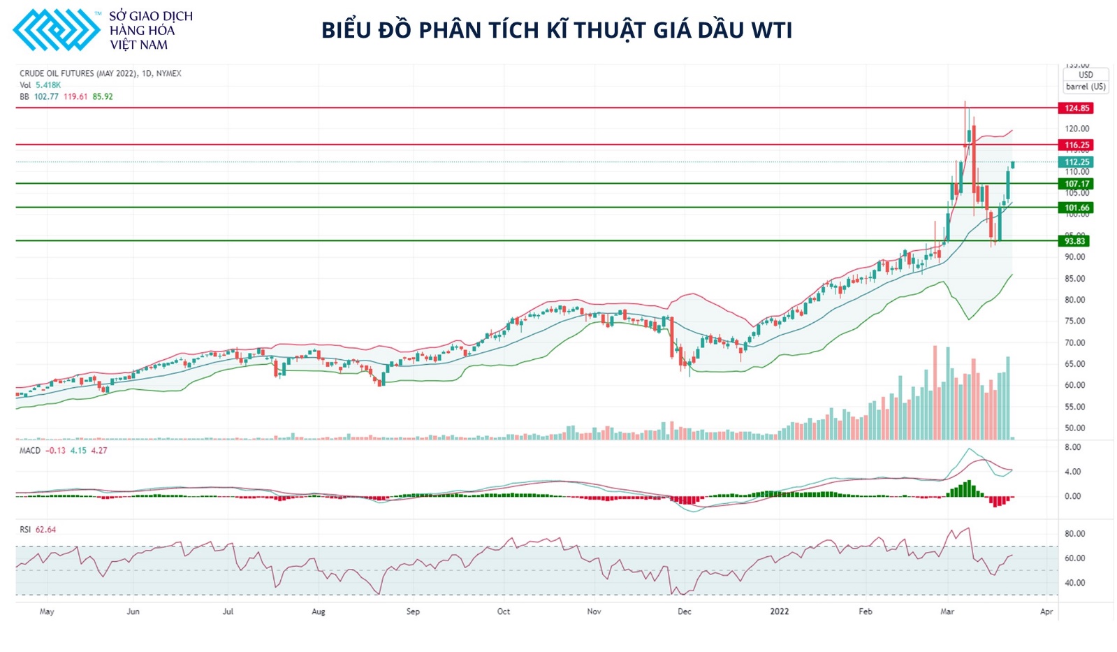 Biểu đồ phân tích kỹ thuật giá dầu WTI (Nguồn: Sở giao dịch Hàng hóa Việt Nam)
