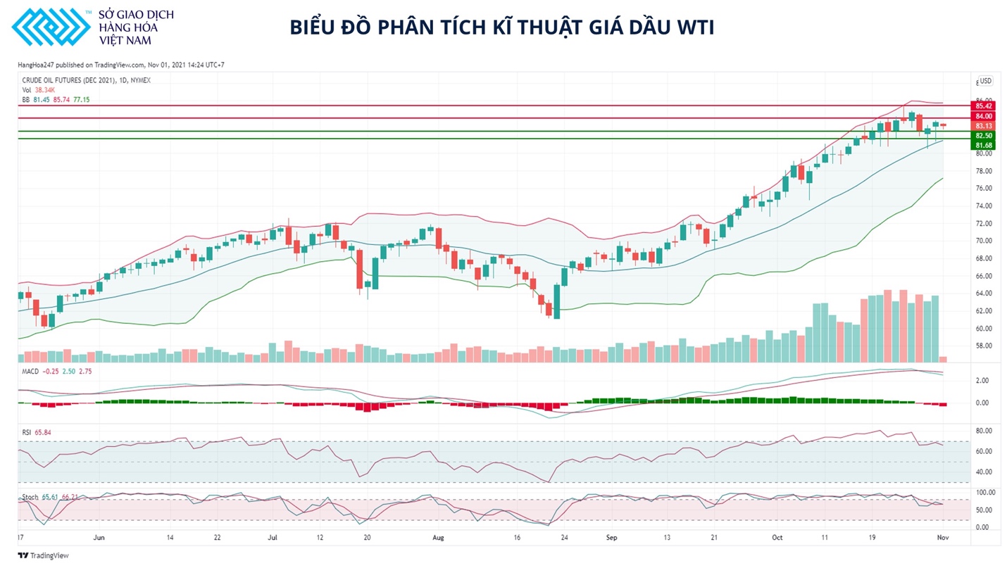 Kết thúc tháng 10, giá WTI chấm dứt chuỗi tăng kéo dài 9 tuần liên tiếp trong khi giá Brent cũng giảm lần đầu sau 7 tuần. Kết thúc tuần giao dịch, giá WTI giảm 0.23% xuống 83.57 USD/thùng, giá Brent giảm 1.09% xuống 83.72 USD/thùng.