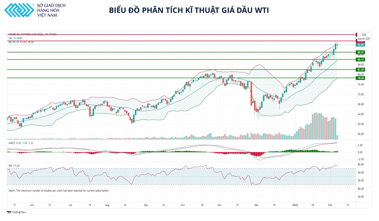 Biểu đồ phân tích kỹ thuật giá dầu WTI (Nguồn: Sở giao dịch Hàng hóa Việt Nam)