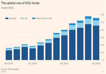 Đại dịch Covid-19 xuyên suốt 2 năm thậm chí còn đẩy nhanh hơn xu hướng này, khiến chiến lược đầu tư chuyển dịch sang các yếu tố ESG nhiều hơn so với các chỉ tiêu tài chính truyền thống. Theo Financial Times, bất chấp nhiều người vẫn đang “bán tín bán nghi” về ESG thì dòng tiền đổ vào các doanh nghiệp tuân thủ ESG đã mạnh mẽ hơn bao giờ hết. Ông Carsten Stendevad, Giám đốc đầu tư mảng phát triển bền vững của quỹ Bridgewater Associates cũng phát biểu trên Financial Times rằng: "Đối với châu Âu nói riêng, tham vọng xanh giờ đây đồng bộ với tham vọng an ninh quốc gia và đảm bảo chủ quyền năng lượng và động lực này sẽ thúc đẩy quá trình chuyển đổi sang năng lượng tái tạo vì các quốc gia không muốn phụ thuộc vào một quốc gia khác về năng lượng”.