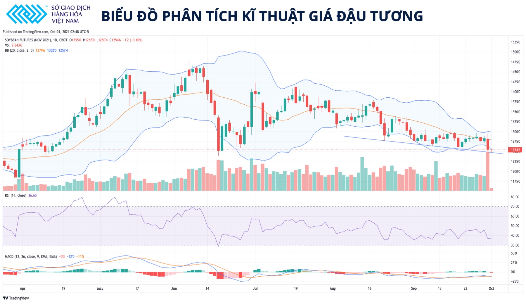 Biểu đồ phân tích giá kỹ thuật đậu tương (Nguồn: Sở giao dịch Hàng hóa Việt Nam)