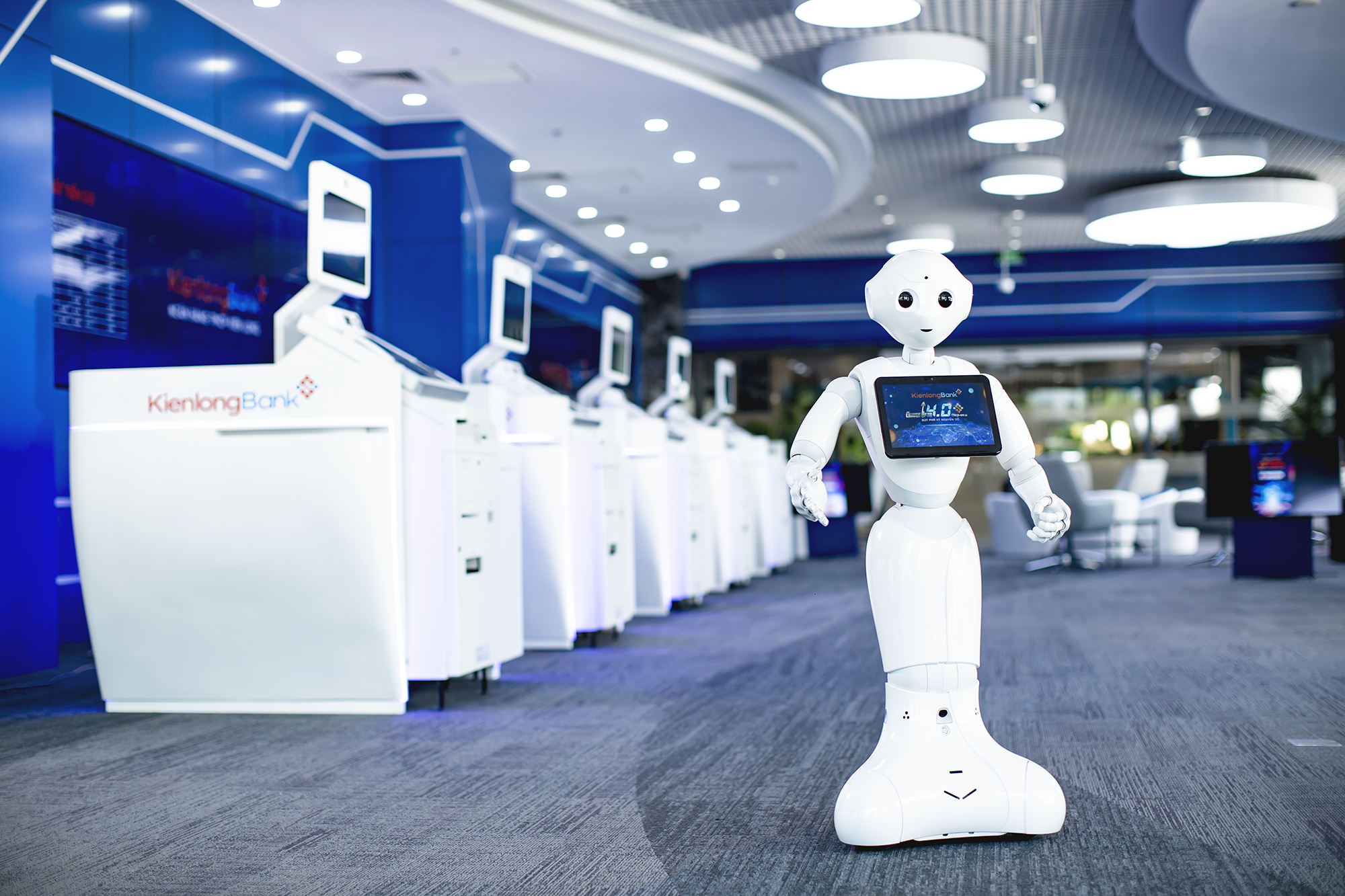 Văn phòng giao dịch tại chi nhánh Phạm Hùng là hình mẫu chuẩn mực của mô hình văn phòng All in one chuẩn 5 sao mà KienlongBank xây dựng cho hệ thống của mình. Theo đó, hệ thống phòng giao dịch của KienlongBank được thiết kế theo chuẩn nhận diện thương hiệu mới với không gian như các phòng chờ cao cấp, ứng dụng hàng loạt công nghệ khoa học hiện đại như quy trình eKYC (định danh điện tử khách hàng), trí tuệ nhân tạo AI, sinh trắc học, nhận diện khuôn mặt (Face ID), nhận diện giọng nói tự nhiên, công nghệ phân tích hình ảnh,… cùng hệ thống máy giao dịch tự động thế hệ mới STM có chức năng thay thế cho các quầy giao dịch truyền thống với đầy đủ các chức năng cho người dùng từ rút tiền, nạp tiền, cấp phát thẻ, mở sổ tiết kiệm… chỉ bằng vài điểm chạm một cách nhanh chóng, chính xác và bảo mật.