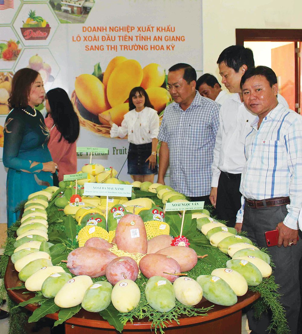 Sau hơn 10 năm đàm phán, trái xoài tươi của nông dân An Giang đã chính thức xuất sang thị trường Hoa Kỳ, phục vụ người tiêu dùng nơi đây. Ngoài thị trường Hoa Kỳ, xoài trong tỉnh còn được xuất khẩu sang 39 quốc gia và vùng lãnh thổ trên thế giới, trong đó thị trường chính vẫn là Trung Quốc, Châu Âu, Hàn Quốc, Nhật Bản, Úc, New Zealand…
