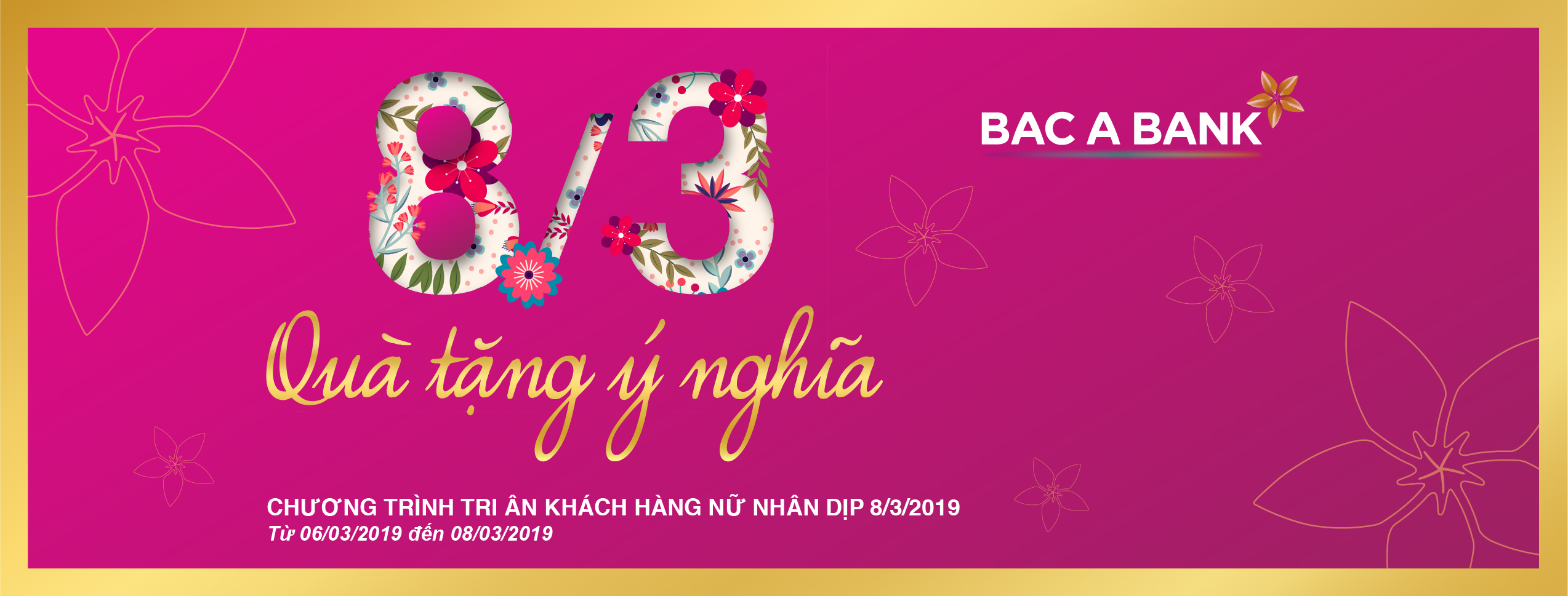 Chương trình khuyến mại “8.3 - Quà tặng ý nghĩa” chính là sự tri ân mà BAC A BANK trao gửi tới một nửa thế giới cùng lời chúc trân trọng và yêu thương. Để biết thêm thông tin chi tiết về Chương trình, xin vui lòng liên hệ Trung tâm chăm sóc khách hàng 1800588828.