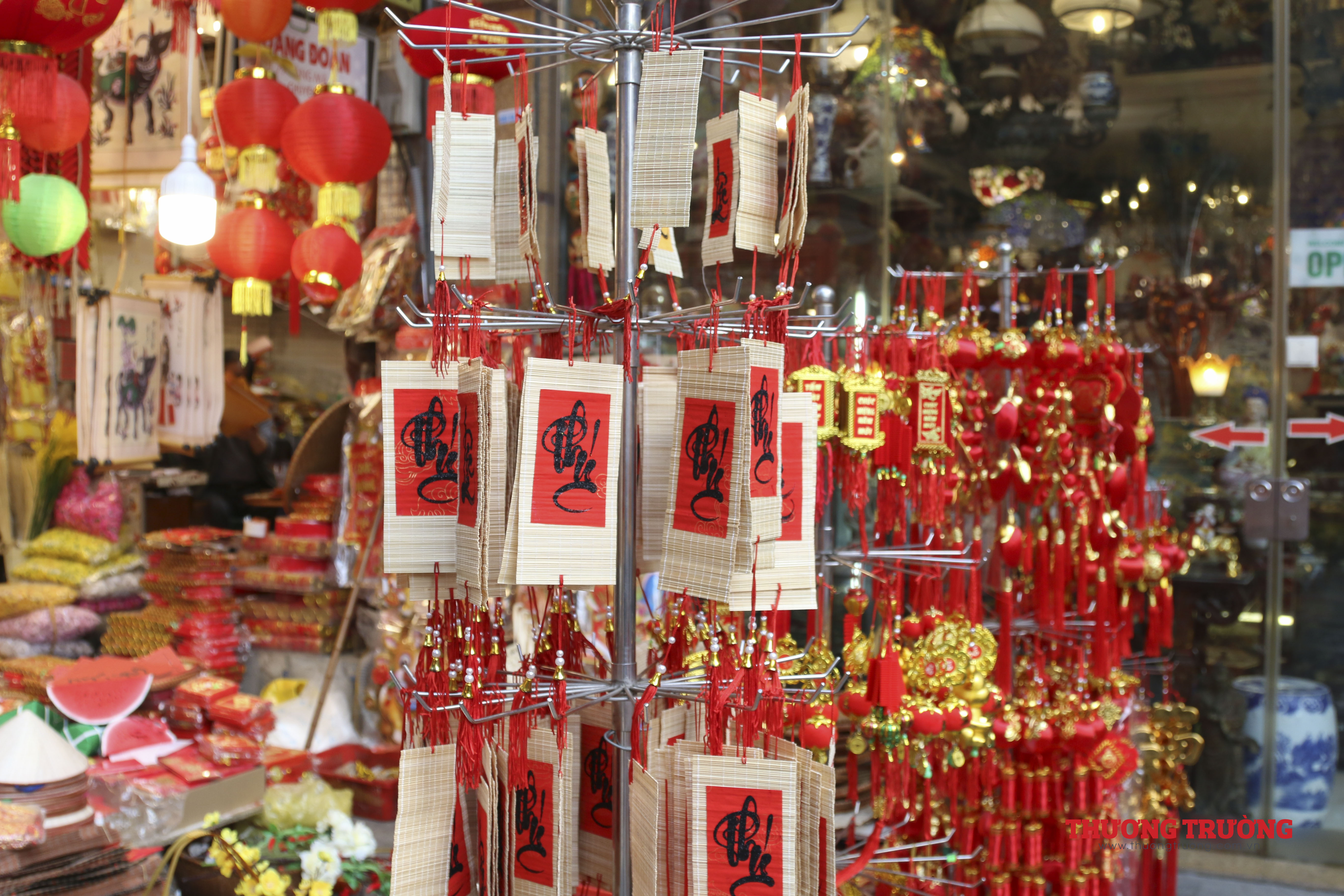 Đèn lồng, bao lì xì, câu đối, bức thư pháp,... là những mặt hàng được nhiều người tiêu dùng quan tâm trong dịp này. Các câu đối, bức thư pháp... mang những chữ gửi gắm ước nguyện may mắn, bình an và hạnh phúc.