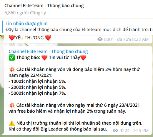 Trước đó, vào ngày 22-4 nhiều người chơi bất ngờ được sàn này báo "tin vui". Theo đó, tài khoản nào nâng vốn và đóng bảo hiểm 2% ngay trong ngày này sẽ nhận được ưu đãi hấp dẫn. Nộp 1.000 - 2.000 USD nhận ngay lợi nhuận 5%, nạp 5.000 USD lợi nhuận đến 7%. Riêng các tài khoản nâng vốn vào ngày tiếp theo là 23-4 vẫn free (miễn phí) bảo hiểm và nhận lợi nhuận 2% trong tuần này.