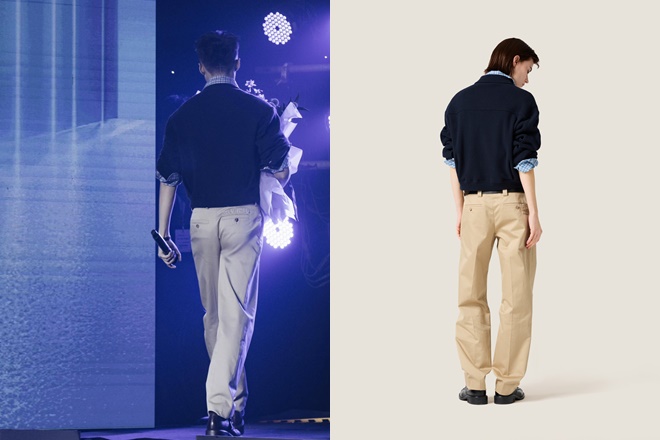 Chưa bàn đến giá trị các món đồ, không ít người cảm thấy outfit của Sơn Tùng có khá nhiều sự tương đồng với một vị... "tổng tài" đang gây viral mạng xã hội.