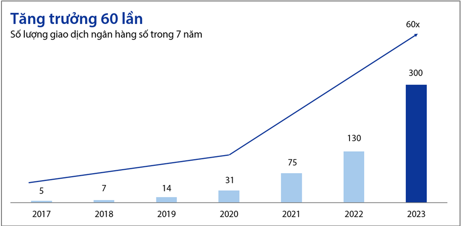 Tăng trưởng số lượng giao dịch ngân hàng số, 2017-2023
