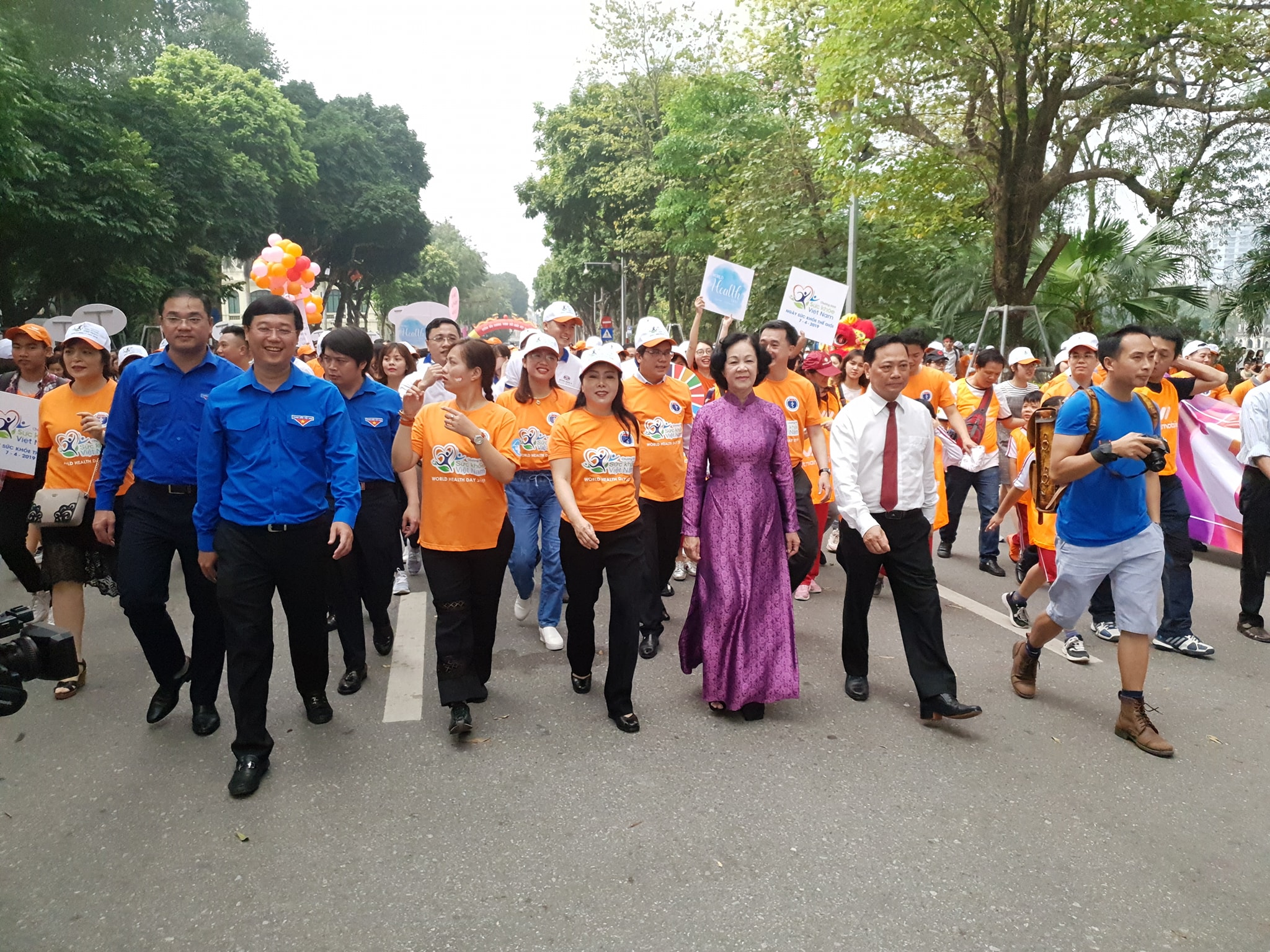 Các đại biểu đi bộ hưởng ứng Ngày Sức khỏe thế giới. |