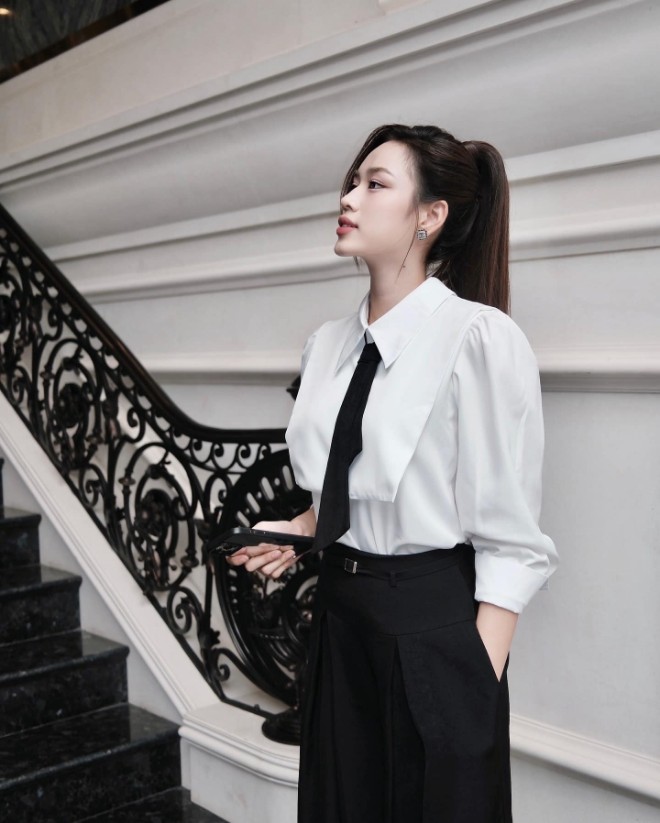 Với á hậu Phương Nhi, sau khi chuyển sang hình ảnh trưởng thành hơn, cô chọn những bộ đầm cắt xẻ nhẹ nhàng, phối cùng trang sức tối giản và túi xách hàng hiệu vừa tôn vóc dáng, vừa giữ nét thanh lịch.