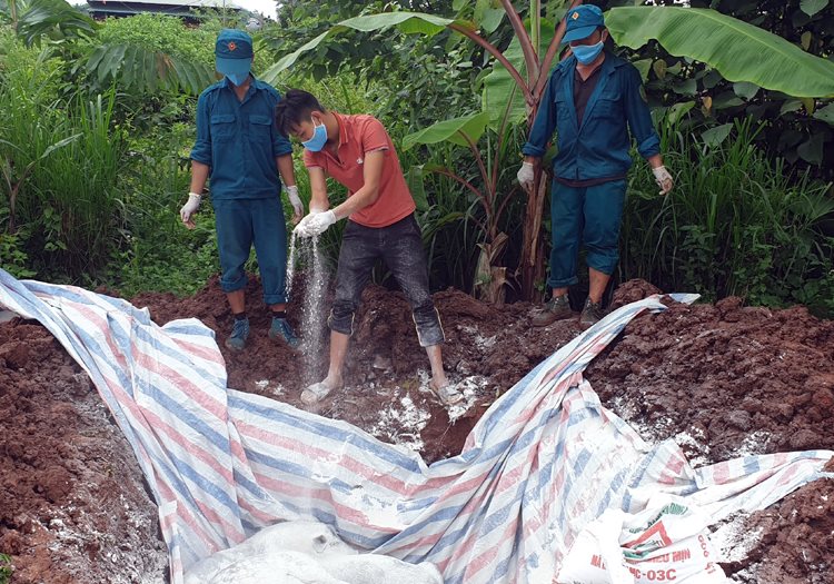 Ngay sau khi tiêu hủy số lợn trên, chính quyền xã Mường Nhé; Phòng Nông nghiệp và Phát triển nông thôn huyện Mường Nhé... đã tiến hành phun hóa chất, rắc vôi bột để tiêu độc, khử trùng khu chuồng trại chăn nuôi của gia đình ông Ngọc và khu vực lân cận.