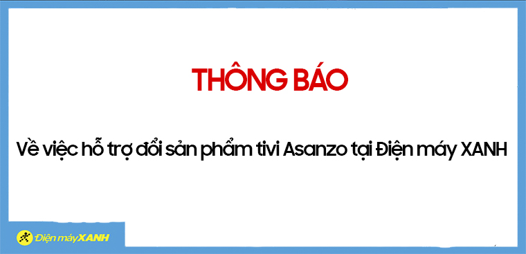 | Điện Máy Xanh ra thông báo về việc hộ trợ đổi sản phẩm tivi Asanzo tại Điện máy Xanh. |