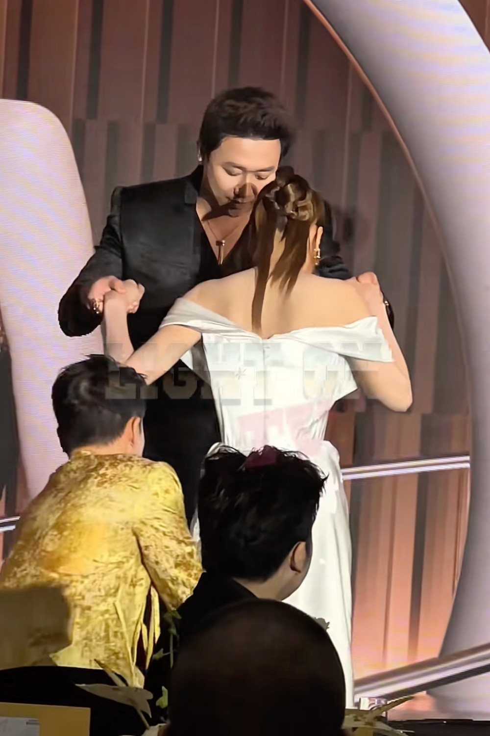 Bên cạnh đó tại sự kiện, một số khoảnh khắc cho thấy Lan Ngọc đi cà nhắc, thậm chí suýt bị vấp khi di chuyển. Khi lên sân khấu nhận giải, Trấn Thành và stylist Hoàng Ku đã phải hỗ trợ dìu nữ diễn viên đi.