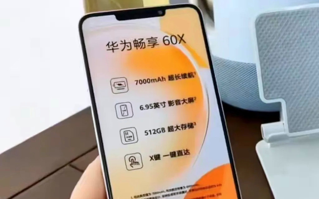 Hình ảnh lộ diện của Huawei Enjoy 60X cho thấy thiết kế màn hình kiểu giọt nước với kích thước màn hình LCD 6,95 inch, pin dung lượng lên tới 7.000mAh và dung lượng lưu trữ 512GB. Các rò rỉ trước liên quan đến Enjoy 60X đã đề cập rằng màn hình hiển thị là TFT LCD với độ phân giải 720 x 1600 pixel và tỷ lệ khung hình 20:9.