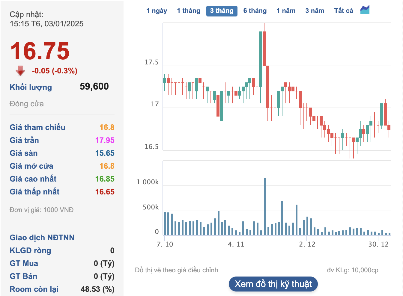 Trên thị trường chứng khoán, kết phiên 03/01, giá cổ phiếu CDC là 16.750 đồng/cổ phiếu, giảm 0,3% so với phiên trước, khối lượng cổ phiếu giao dịch khớp lệnh đạt 59,6 nghìn đơn vị.
