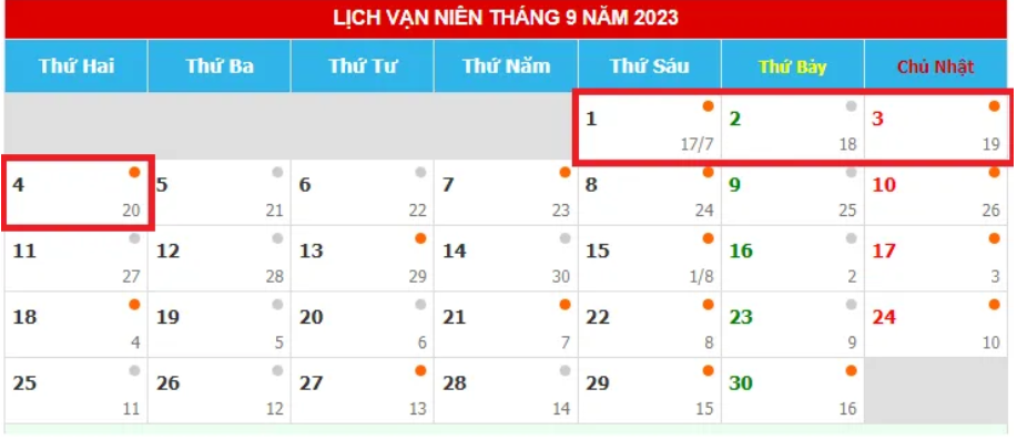 Theo đó, người lao động được nghỉ thứ Bảy ngày 2/9 và lựa chọn 1 trong 2 ngày: thứ Sáu ngày 1/9 hoặc Chủ nhật ngày 3/9.