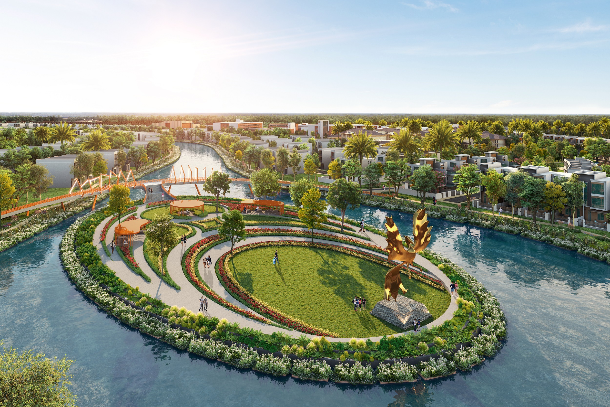 Công viên, clubhouse thượng lưu với mảng xanh, sông nước giao hòa phân bổ khắp các phân khu tại Aqua City.