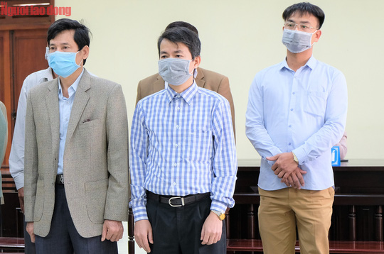 Các bị cáo tại tòa, hàng trước là 5 cán bộ Thanh tra tỉnh Thanh Hóa. Ảnh: NLD.