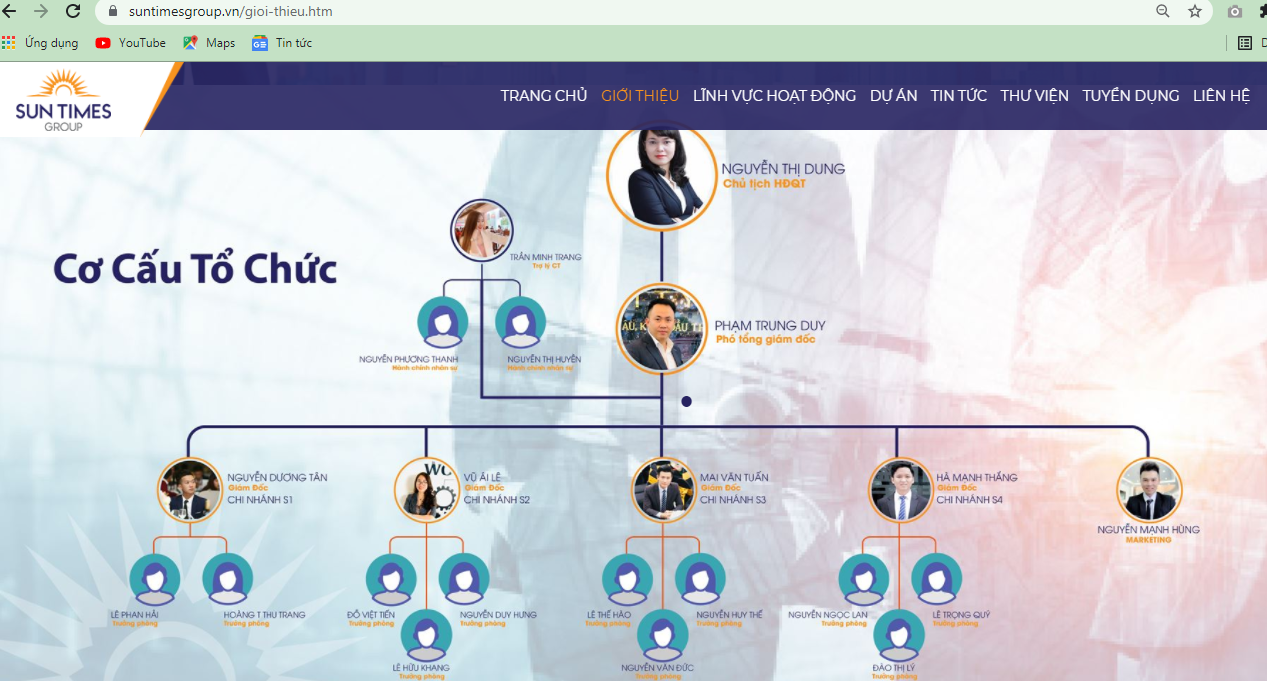 Cơ cấu tổ chức của Công ty CP Tập đoàn Sun Times được giới thiệu trên suntimesgroup.vn