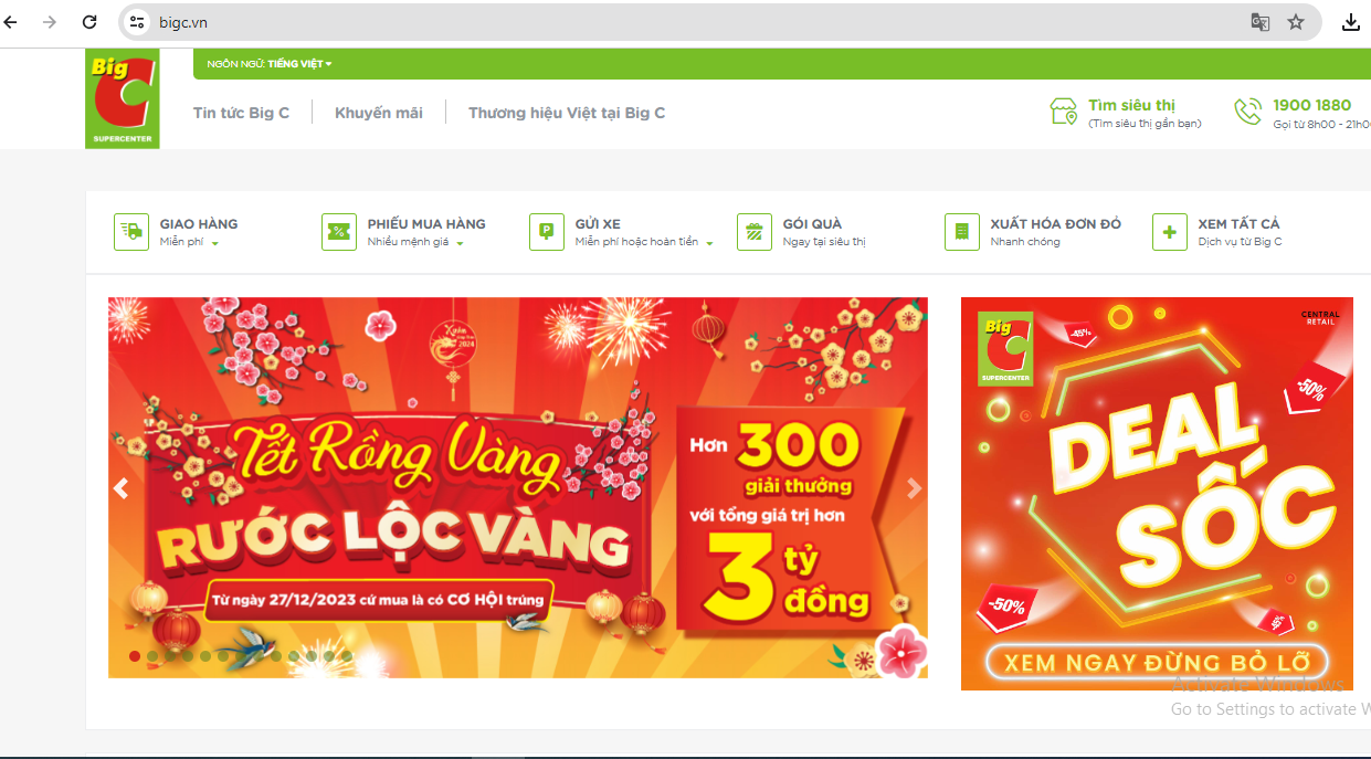 Còn tại hệ thống siêu thị GO!, Big C trên toàn quốc triển khai chương trình “Dọn nhà đón Tết” và “Chúc mừng năm mới 2024”. Theo đó, chương trình áp dụng khuyến mãi hấp dẫn tới trên 50% với hàng trăm sản phẩm chất lượng và cơ hội rút thăm trúng hơn 300 giải thưởng, với tổng giá trị hơn 3 tỷ đồng.