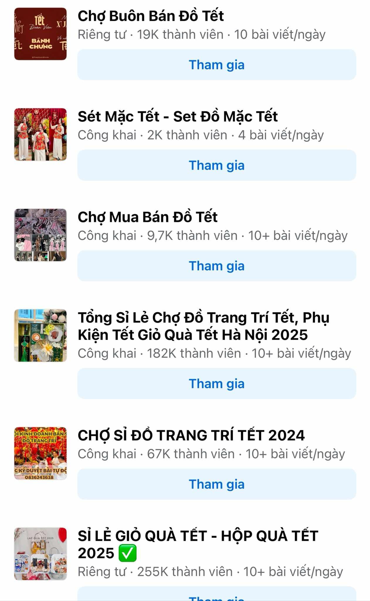 Người tiêu dùng dễ dàng để mua cho mình những món đồ Tết thông qua các hội nhóm như thế này.
