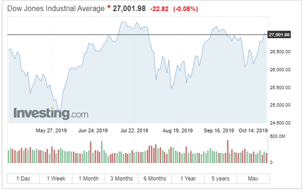 Kết phiên giao dịch, chỉ số Dow Jones Industrial Average giảm 22,82 điểm, tương đương 0,1% đóng cửa ở mức 27.001,98 điểm.