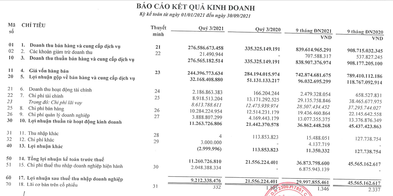 Trong khi đó, các chi phí đồng loạt giảm như chi phí tài chính giảm 32% chỉ còn 8,9 tỷ đồng, chi phí bán hàng cũng giảm 18% và chi phí quản lý doanh nghiệp giảm về mức 3,8 tỷ đồng.