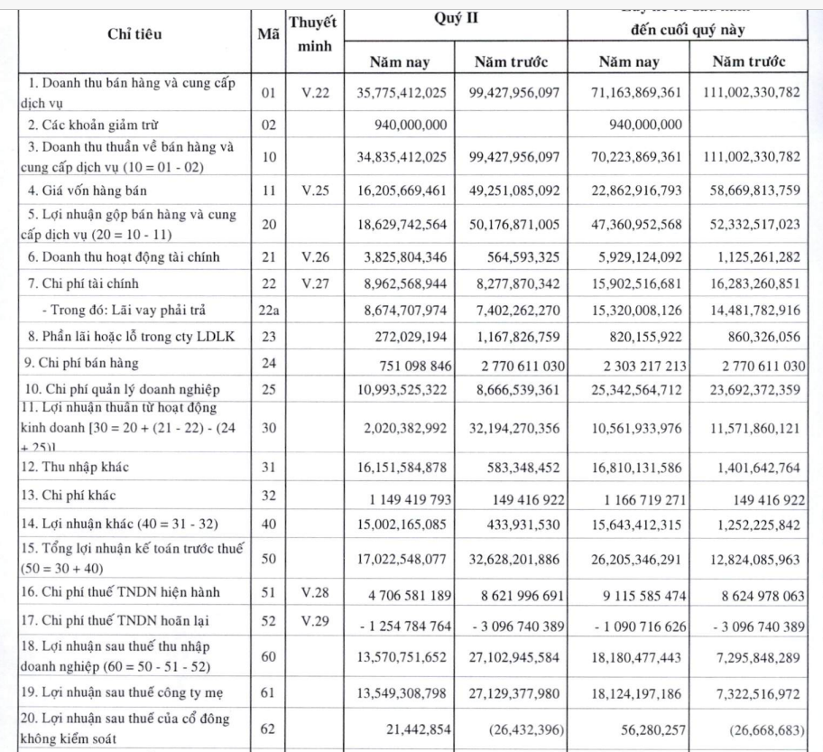 Đáng chú ý, hoạt động tài chính mang về doanh thu gần 4 tỷ đồng, gấp gần 7 lần cùng kỳ trong đó chủ yếu đến từ lãi cho vay vốn. Dù có khoản lợi nhuận khác tăng đột biến từ hơn 400 triệu đồng lên 15 tỷ đồng. VPH vẫn báo lãi ròng giảm 50% so cùng kỳ, còn gần 14 tỷ đồng.