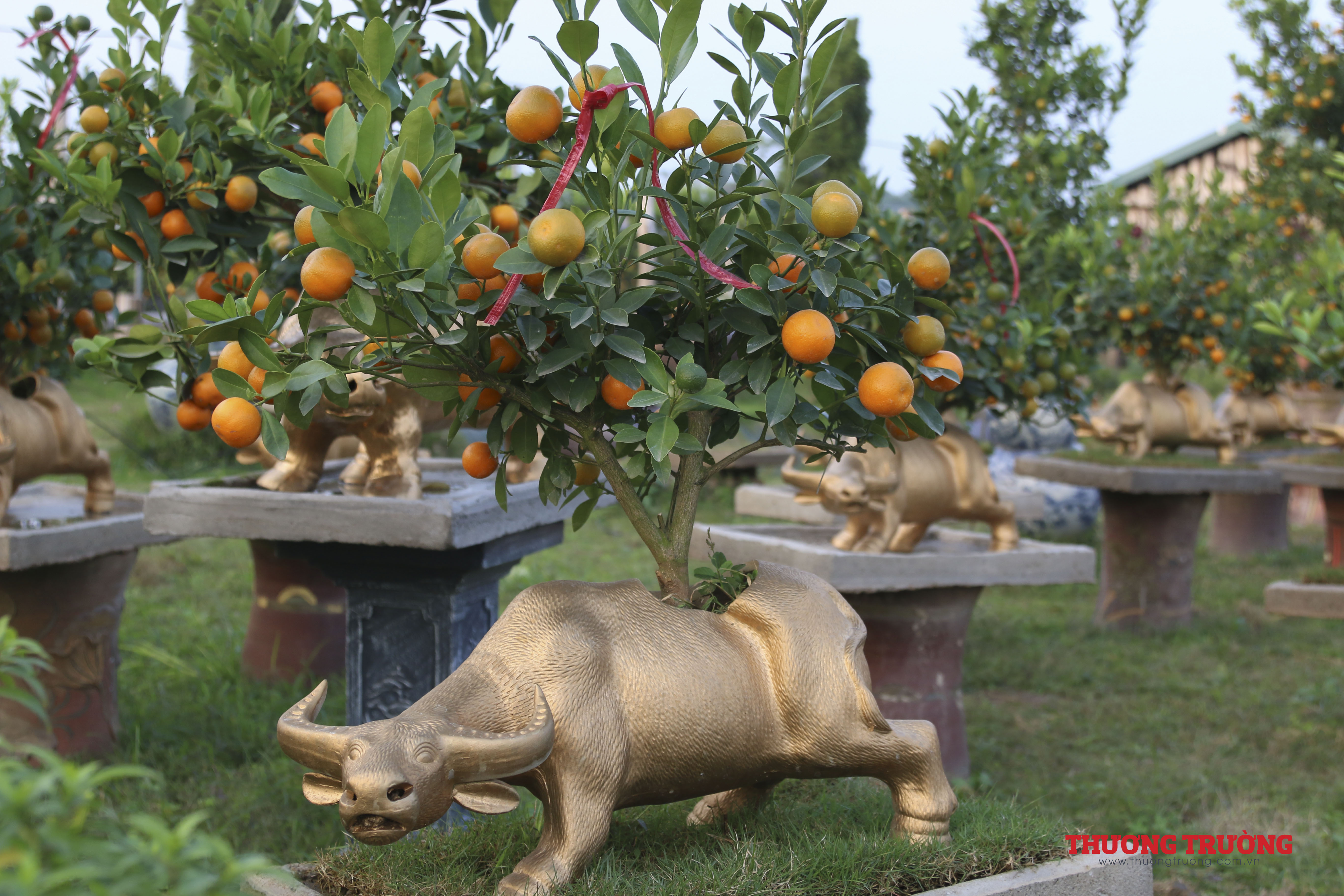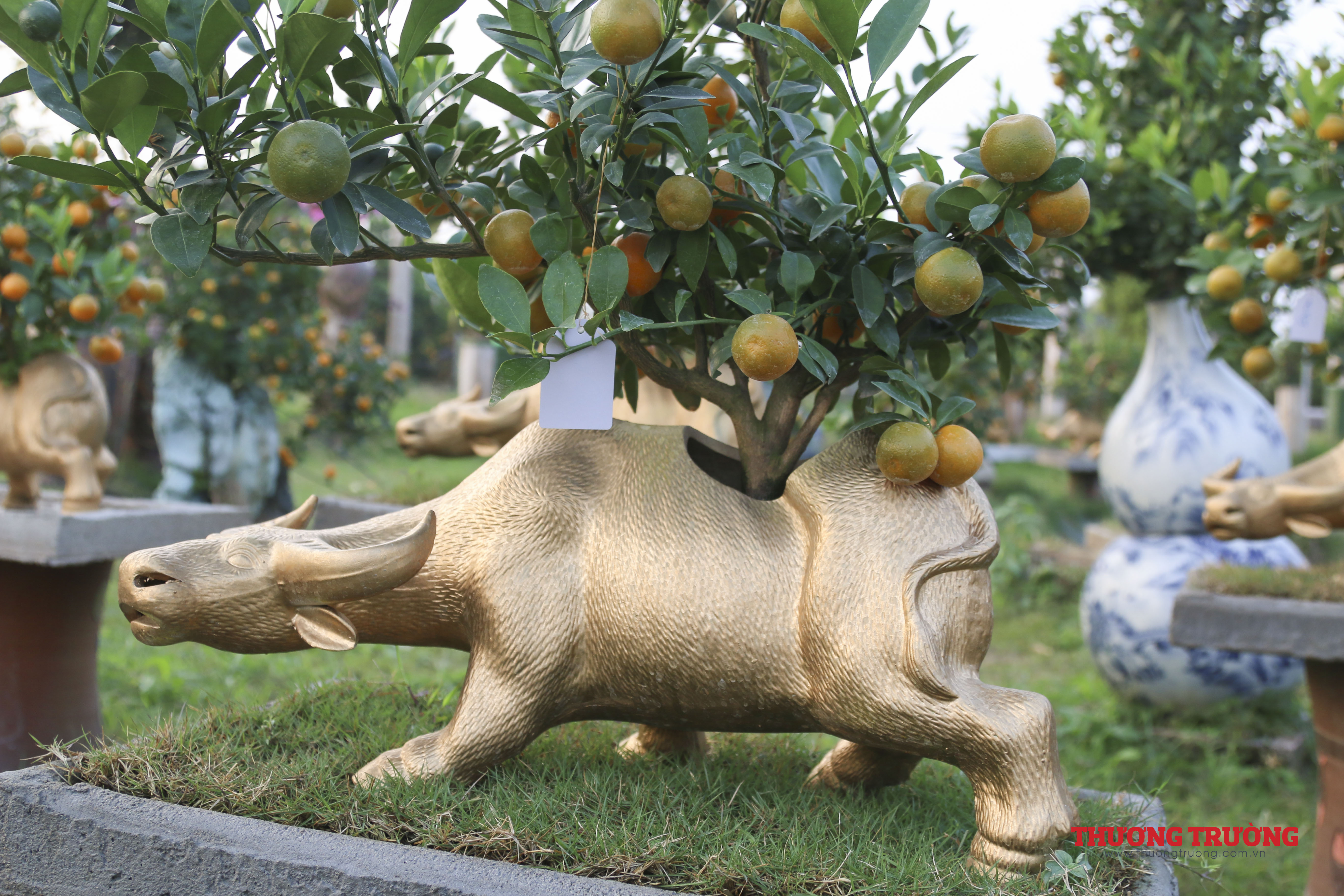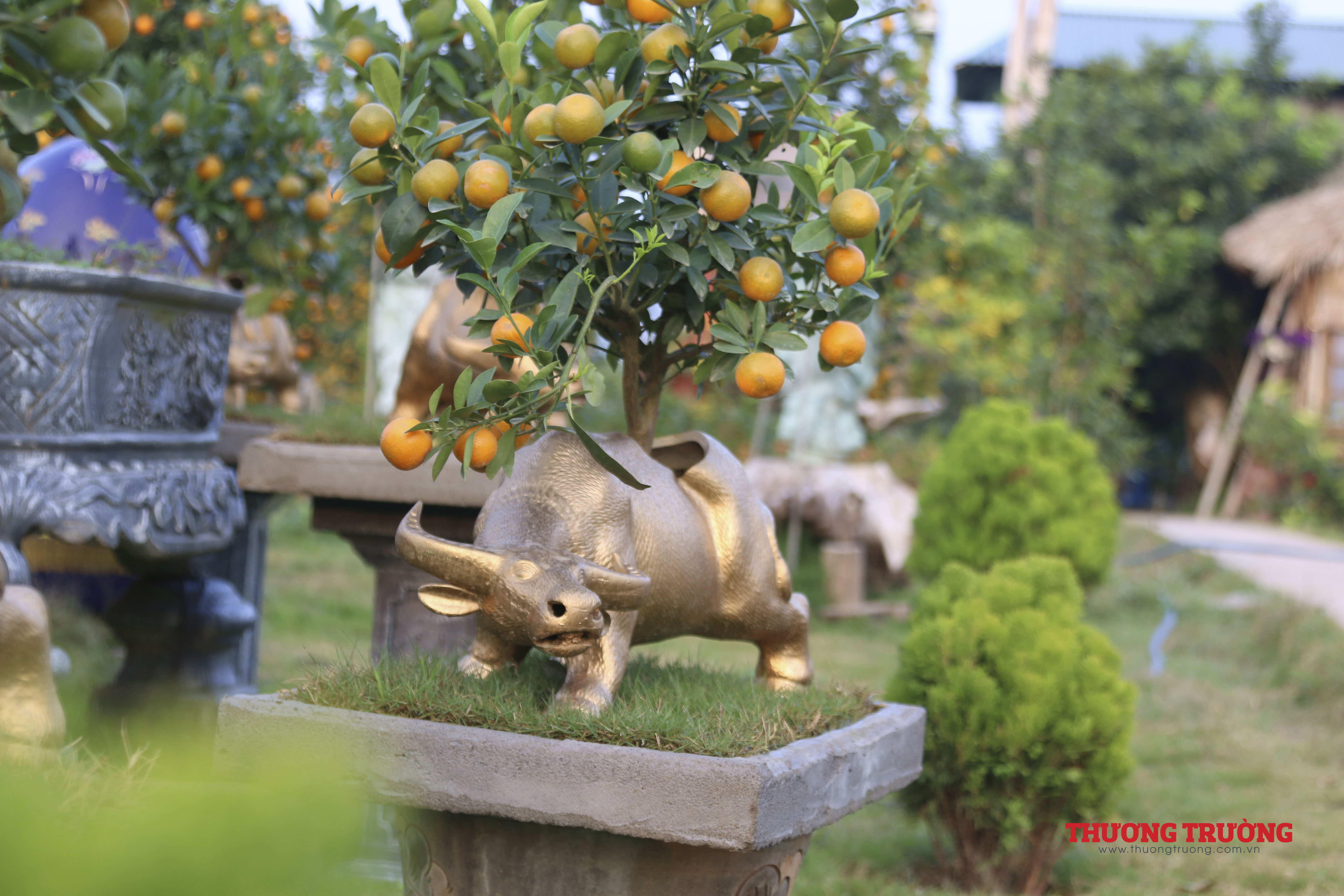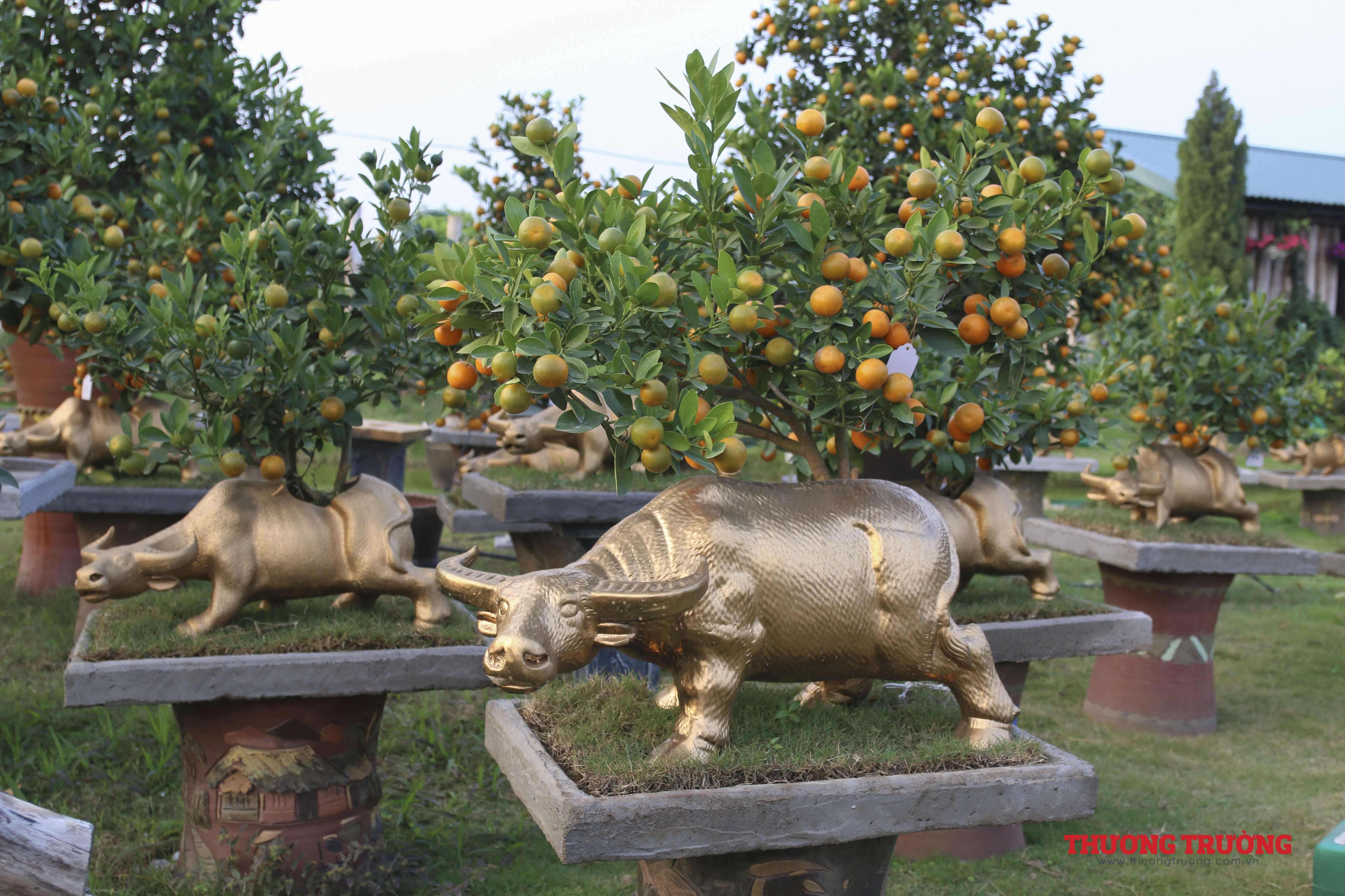 Quất bonsai trồng trên con trâu nhỏ màu đen thì có giá 1 - 2 triệu đồng, trâu vàng cỡ trung là 3 - 6 triệu đồng/con, trâu vàng khổng lồ thì đắt đỏ hơn cả, dao động từ 8 - 10 triệu đồng/con.