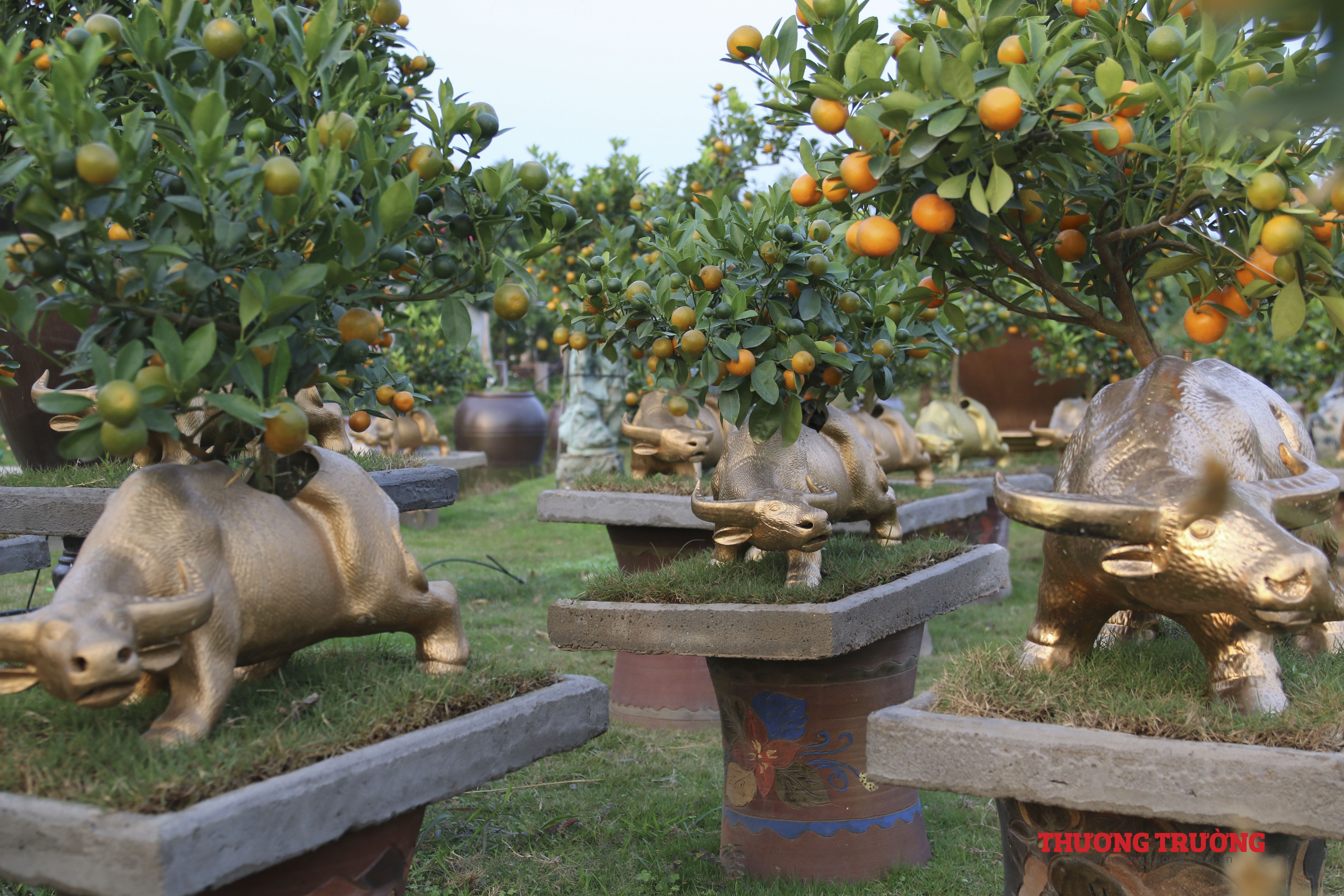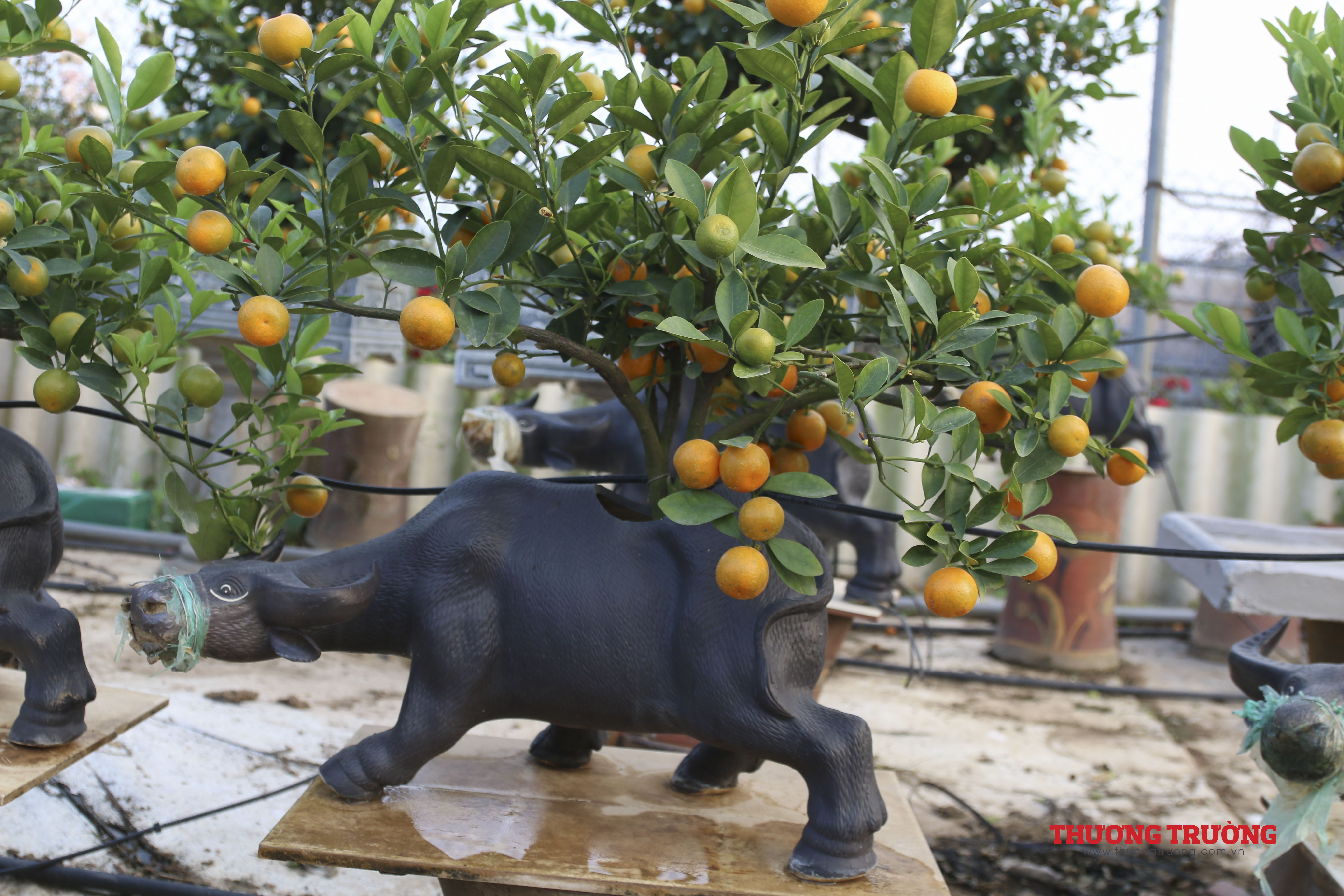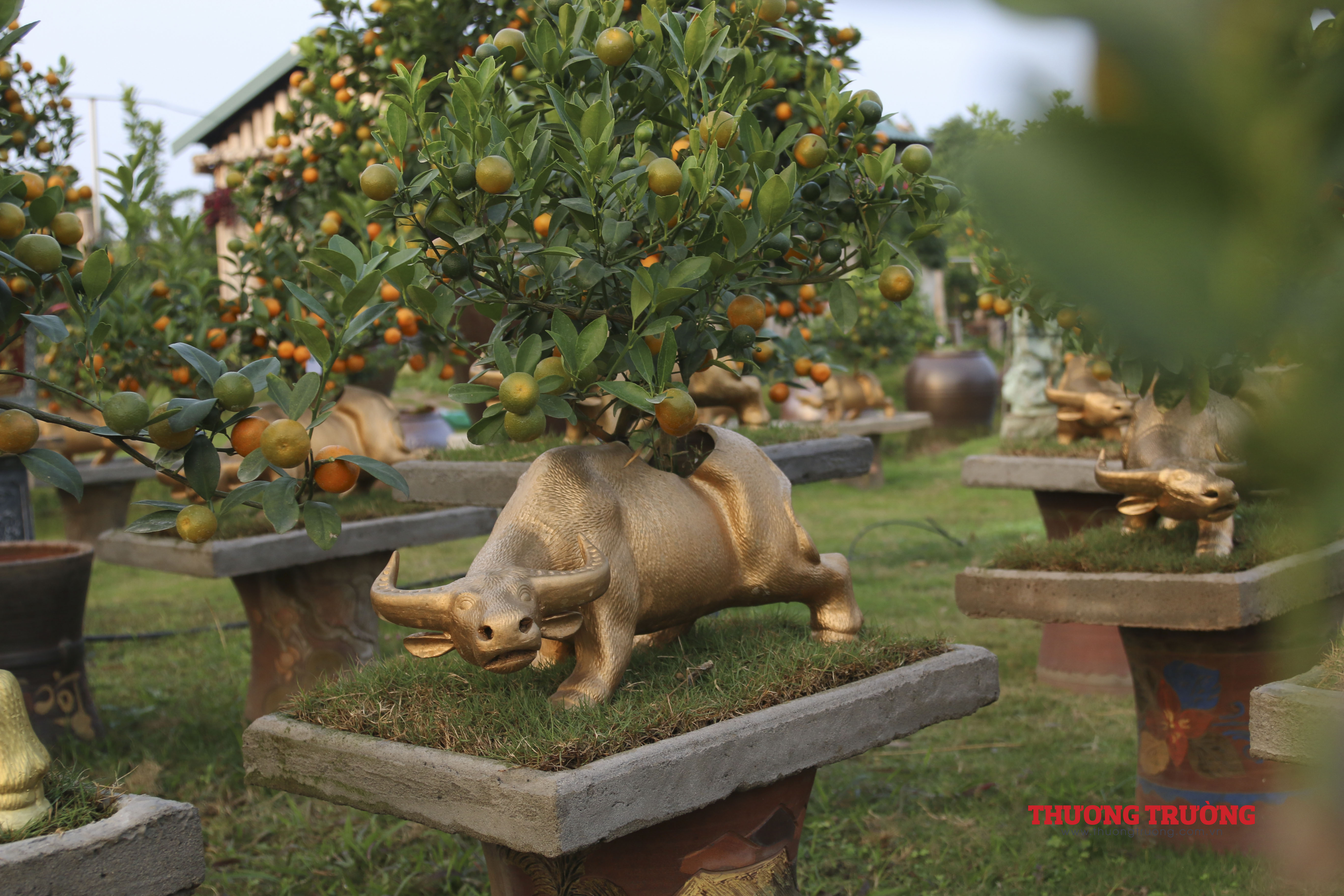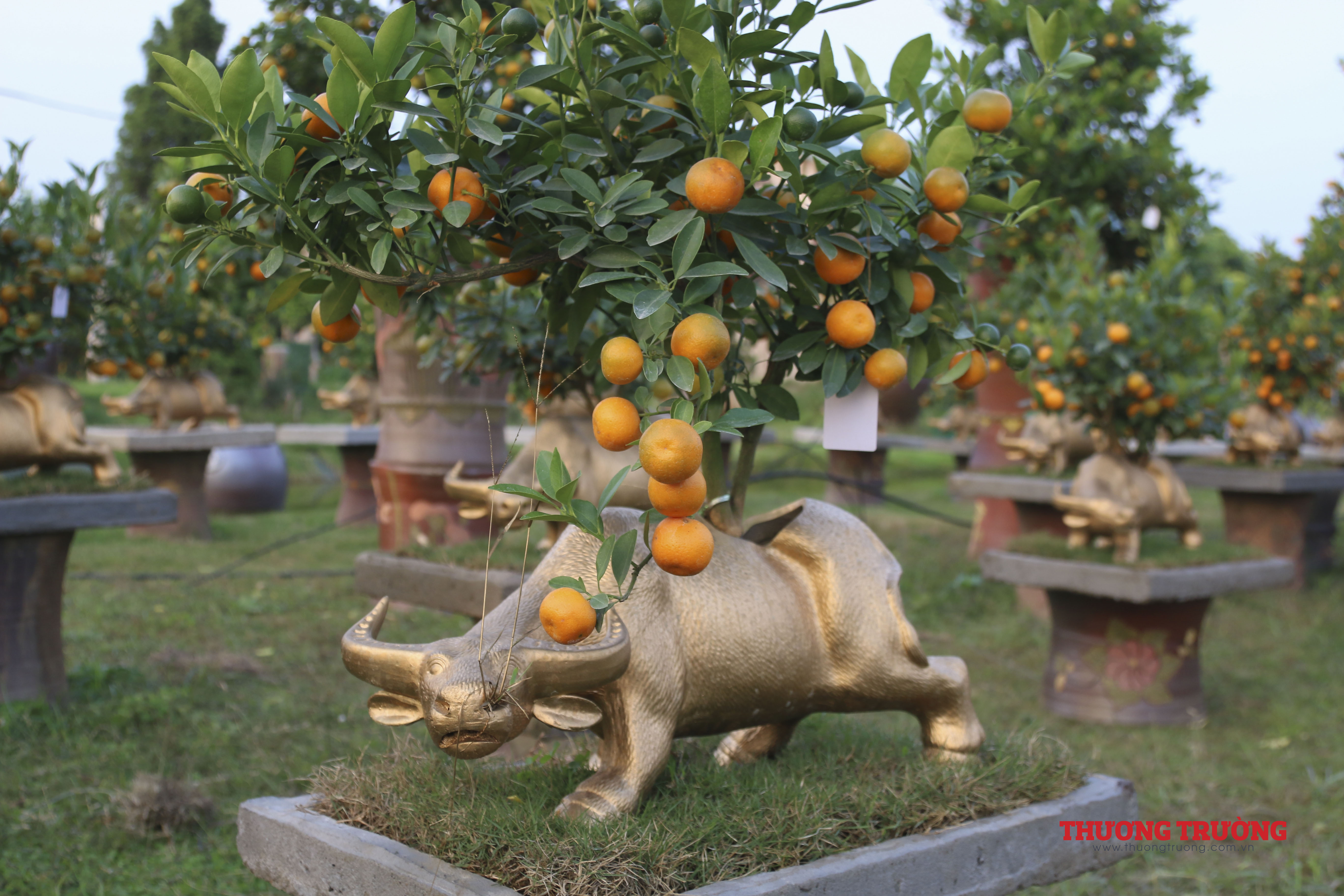 Năm 2021 là năm Tân Sửu nên quất bon sai được trâu vàng cõng được nhiều người quan tâm. Nhiều chậu quất quả đã chín mọng.