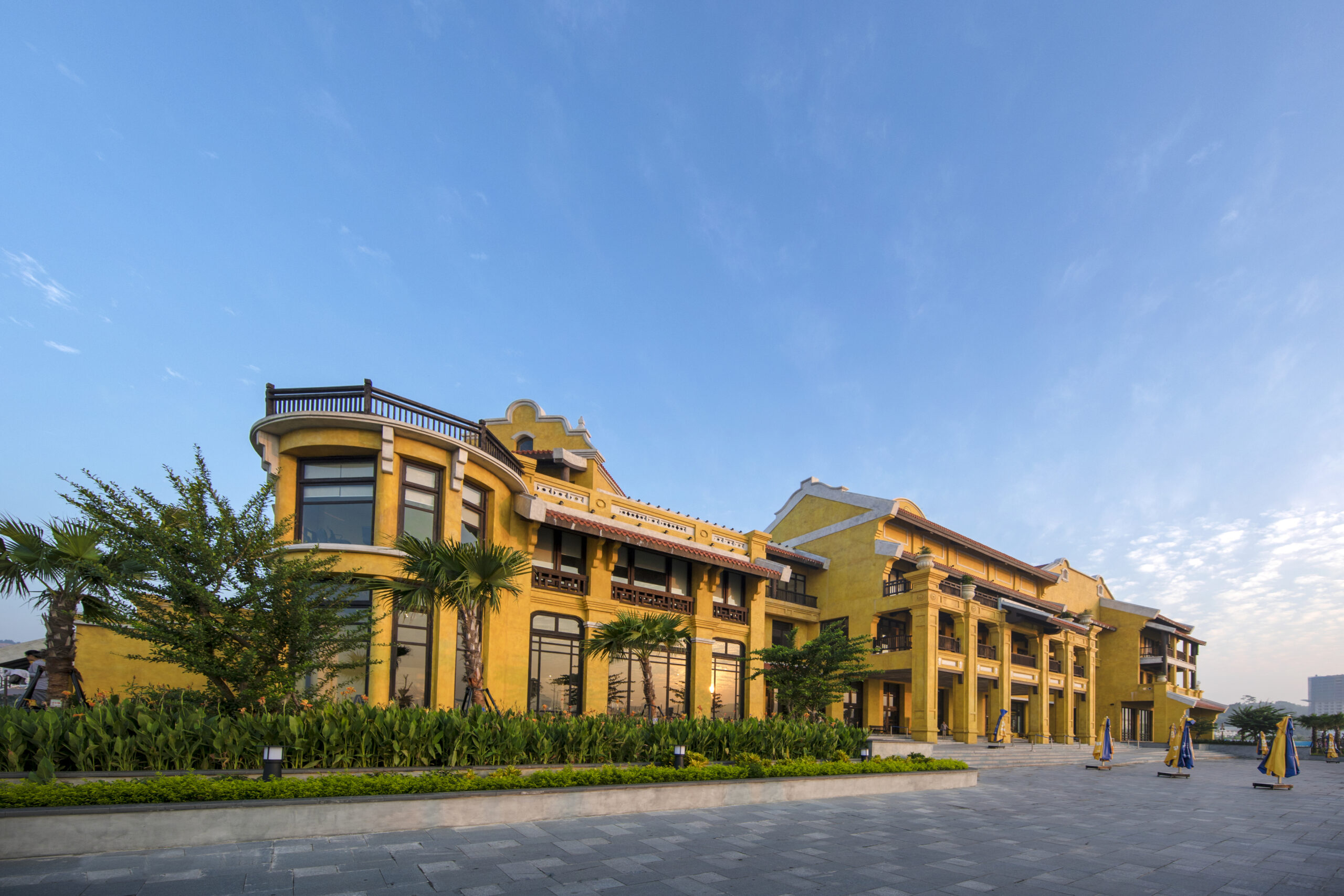 Am hiểu sâu sắc văn hóa và lịch sử Việt Nam, Bill Bensley đã tạo nên khu nhà ga với dáng vẻ tựa như một góc phố cổ Hội An thu nhỏ, nằm duyên dáng bên Di sản thiên nhiên thế giới – vịnh Hạ Long, với đặc trưng là sắc vàng trên các bức tường và mái ngói nâu đỏ cổ kính.