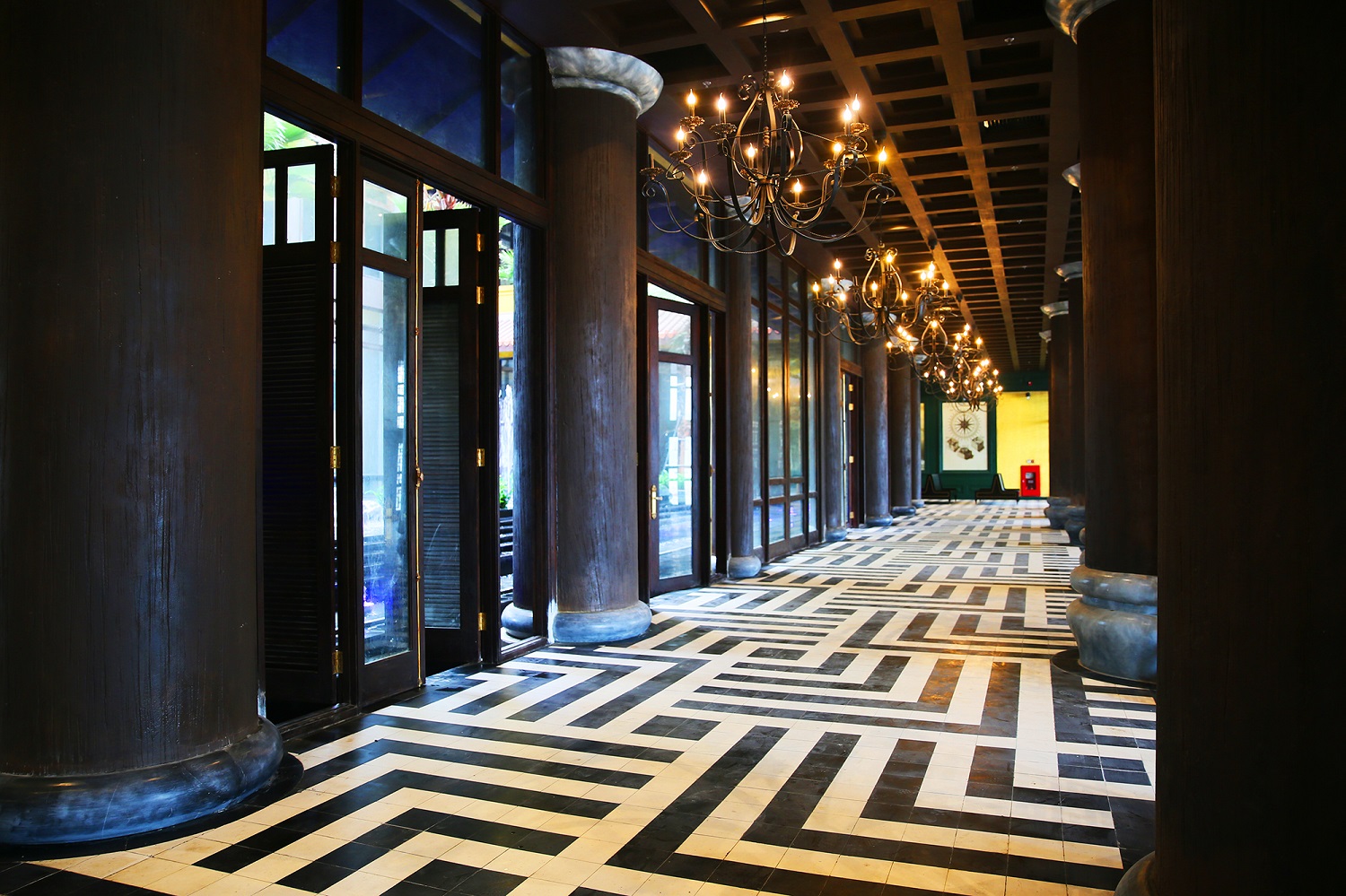 Hành trình khám phá “khu phố Hội An” dẫn lối du khách từ bất ngờ này đến bất ngờ khác, bởi ngay khi bước vào bên trong nhà ga, du khách sẽ choáng ngợp trước thiết kế ấn tượng như tầng hầm của một con tàu biển thế kỷ 13, với hệ thống cột gỗ, trần gỗ và trần thép, nội thất cầu kỳ.