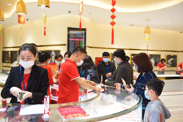 Mặc dù bị ảnh hưởng bởi dịch bệnh Covid -19 song theo ghi nhận từ các Trung tâm vàng bạc trang sức lớn, lượng khách đến giao dịch không hề giảm so với những năm trước. Dự kiến, tới chiều tối ngày mùng 9 và mùng 10 lượng giao dịch sẽ tiếp tục tăng cao.