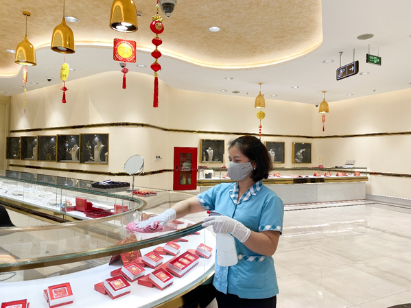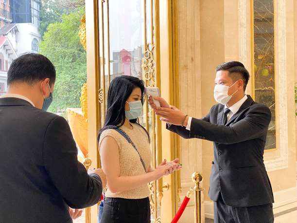 Đại diện Tập đoàn DOJI cho biết, doanh nghiệp này đã triển khai nhiều hoạt động thiết thực như: Đo nhiệt độ cho khách hàng trước khi tiến vào không gian mua sắm; Mời khách hàng rửa tay sát khuẩn khi đến cửa hàng; Mời khách hàng luôn mang khẩu trang và nhân viên DOJI cũng luôn tuân thủ mang khẩu trang khi giao tiếp với khách hàng.