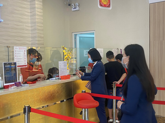 Khách hàng mua vàng cầu may an toàn dịp Thần Tài 2021 tại DOJI.