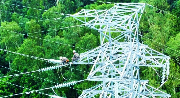 Cán bộ kỹ thuật tiến hành việc đấu nối sẵn sàng cho đóng điện đối với dự án Xuất tuyến 110kV sau TBA 220kV Yên Hưng.