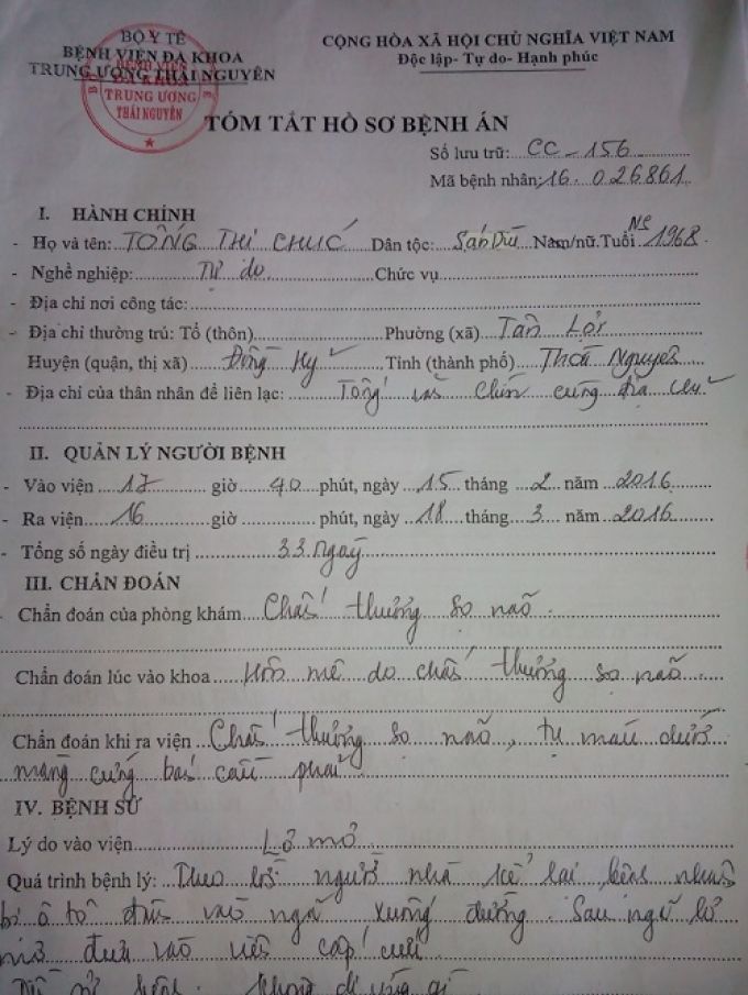 Bà Tống Thị Chúc lúc còn sống điều trị tại Bệnh viện tỉnh Thái Nguyên