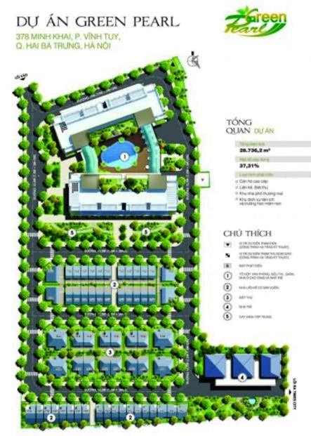 Dự án Green Pearl có địa chỉ tại số 378 phố Minh Khai, quận Hai Bà Trưng, TP.Hà Nội với quy mô 28.736m² bao gồm 2 toà chung cư và khu nhà nhà ở thấp tầng liền kề, biệt thự.